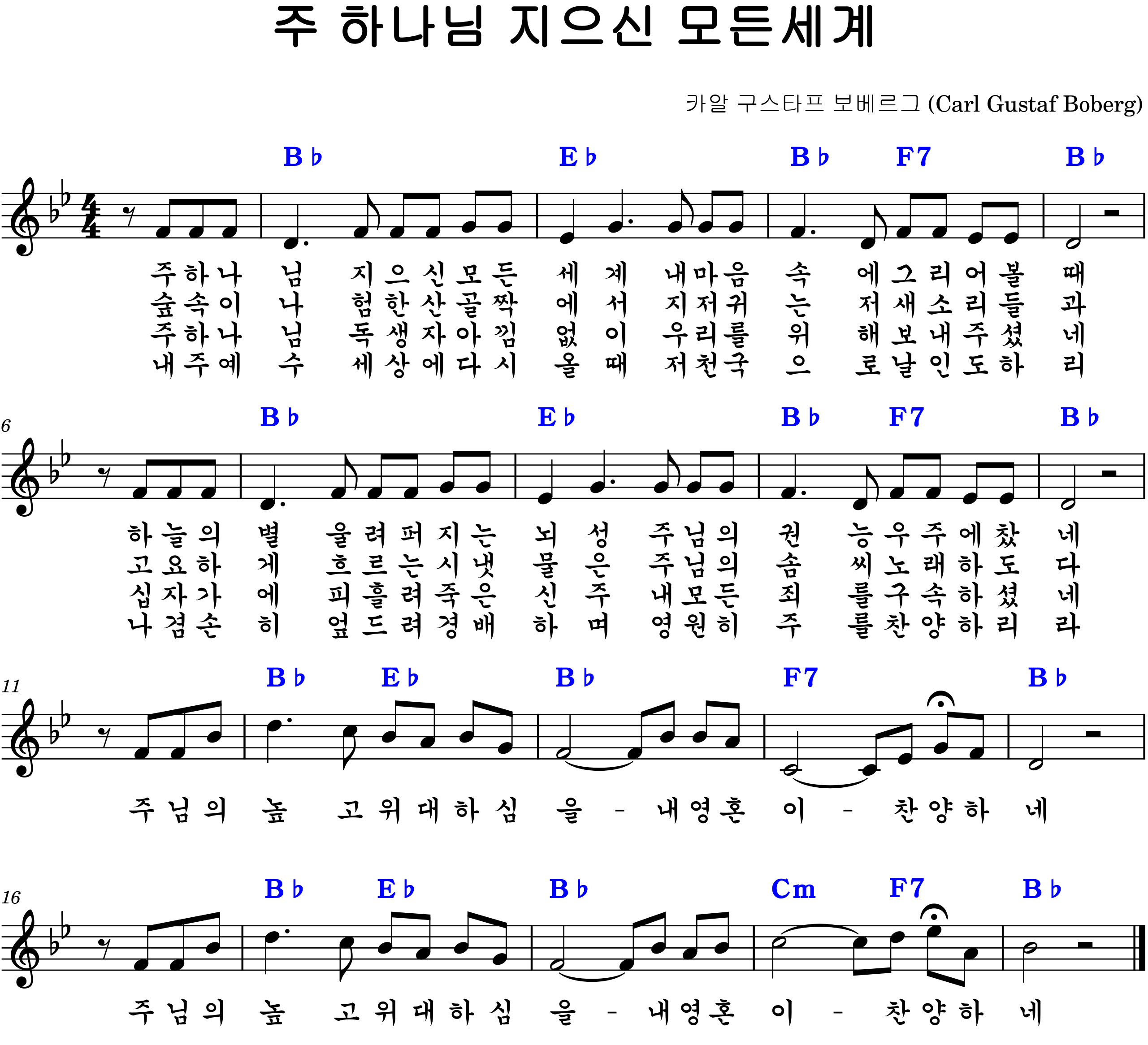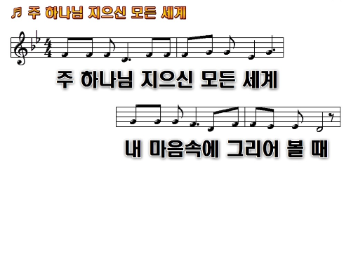 주 하나님 지으신 모든 세계 내 마음 속에 그리어 볼 때