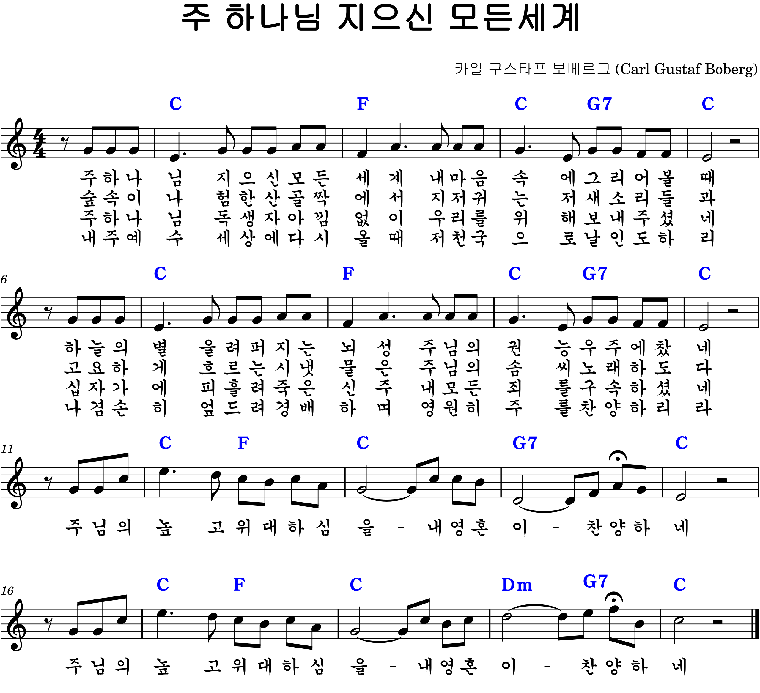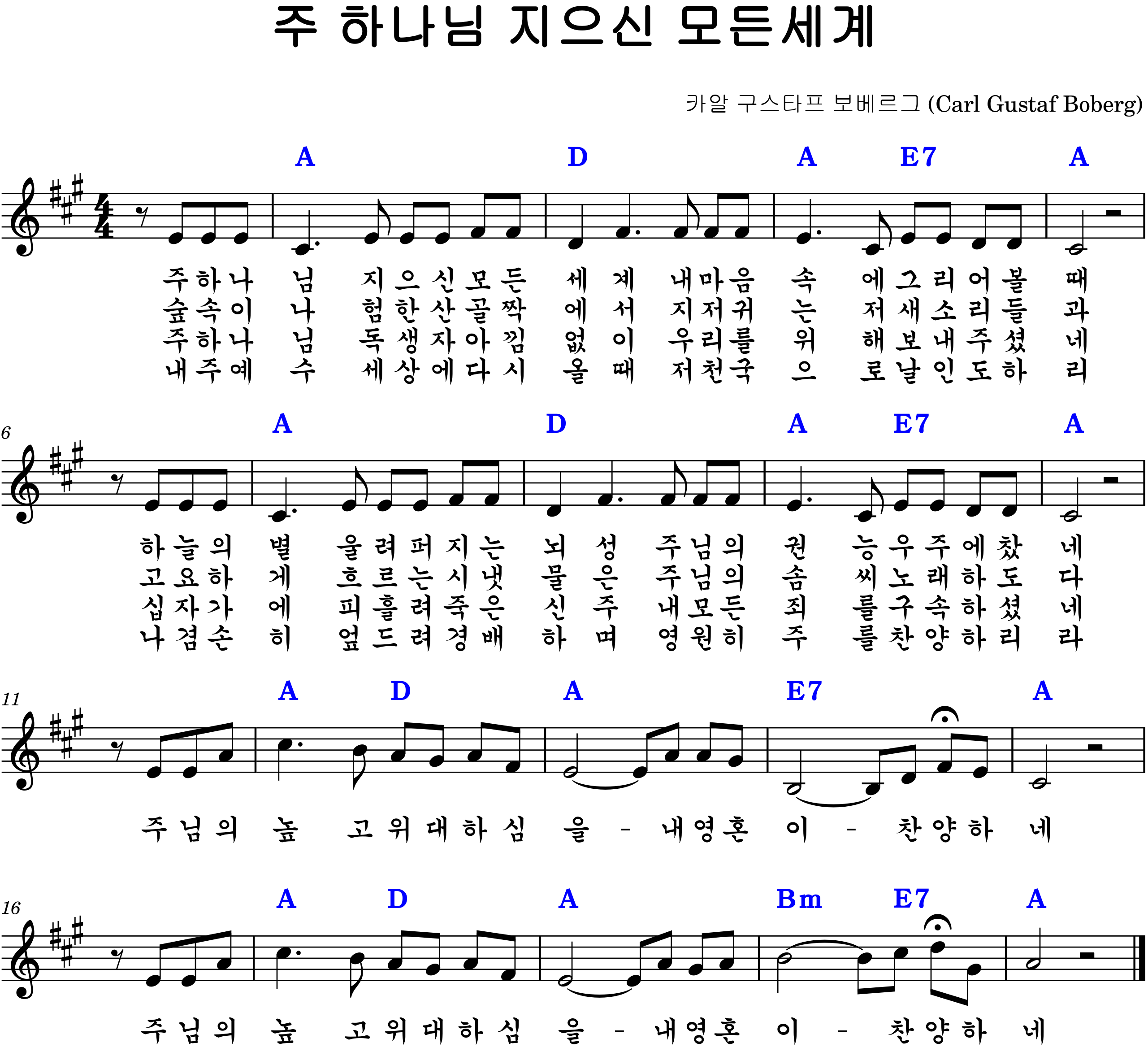 스웨덴어 제목: "O Store Gud" (오 위대하신 하나님)