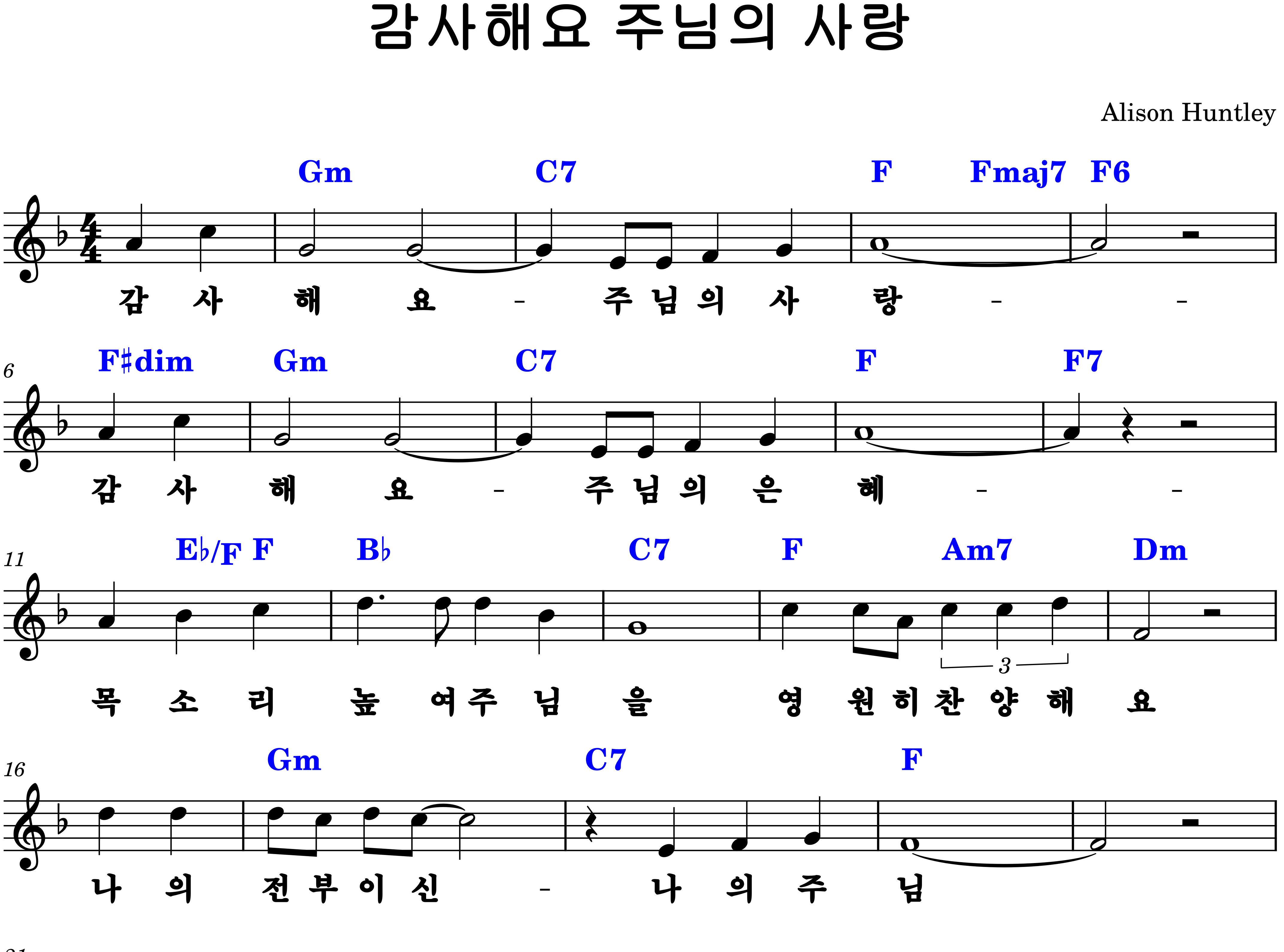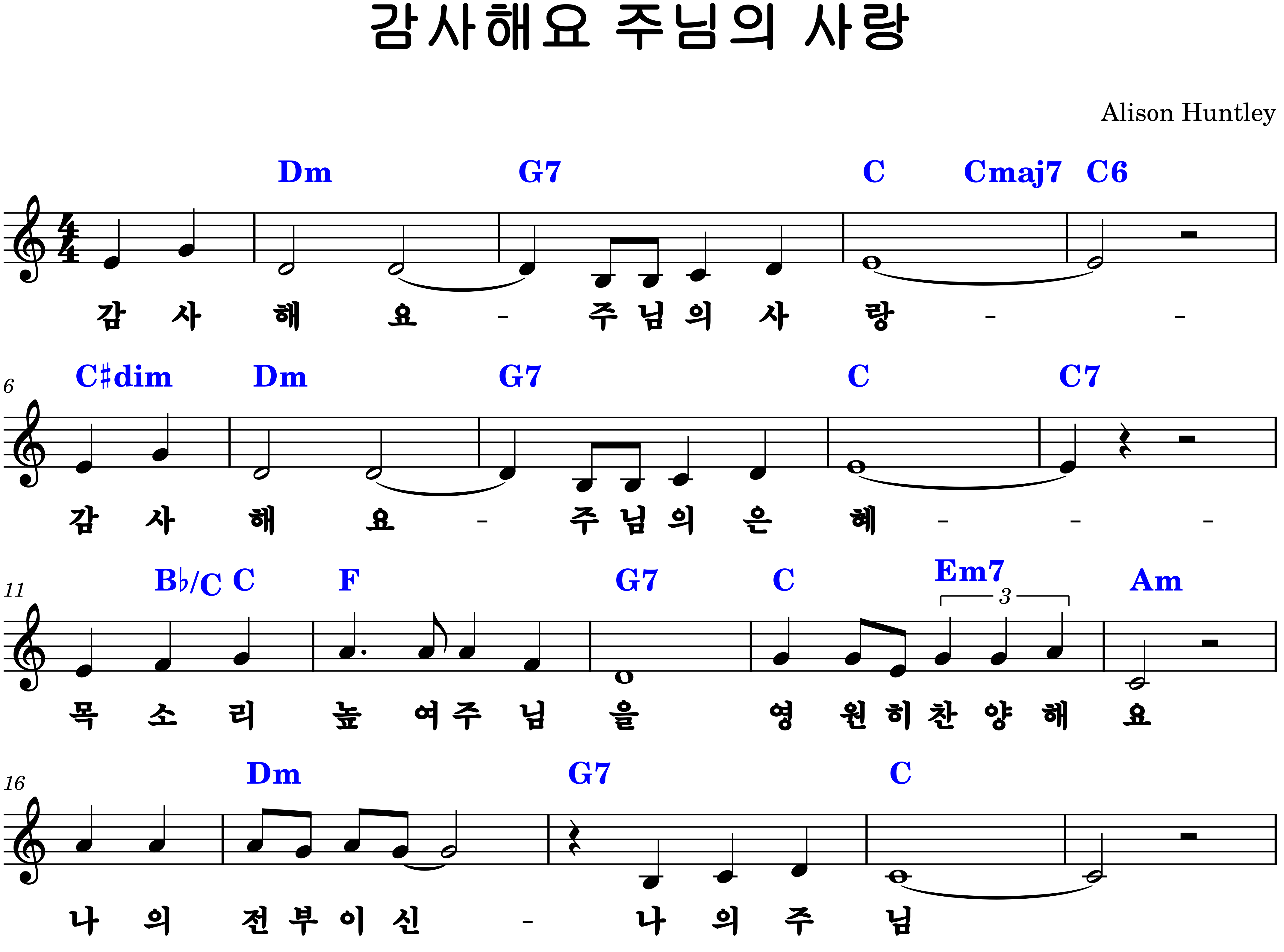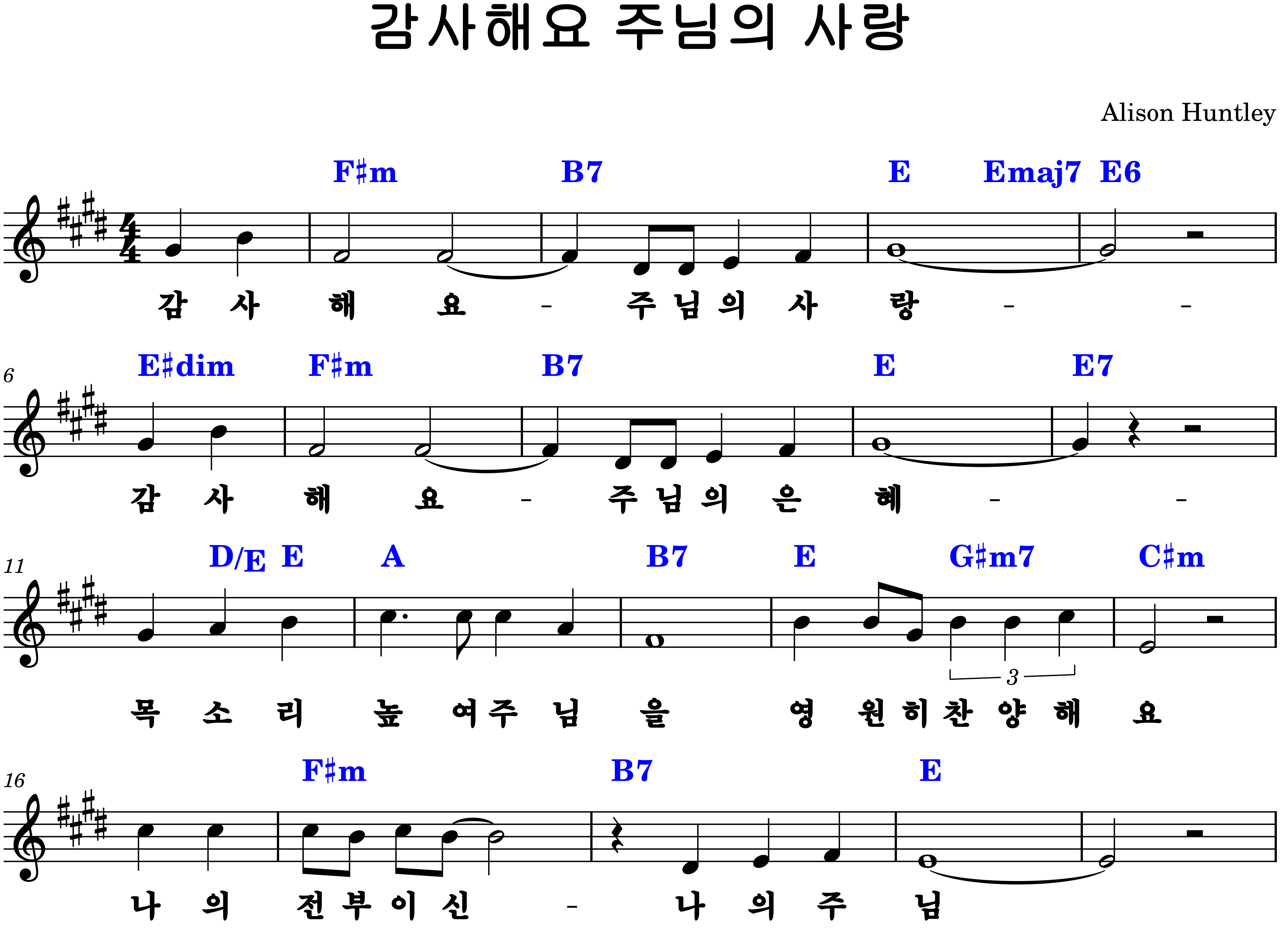 "감사해요 주님의 사랑": 주님의 사랑에 대한 감사의 표현입니다.