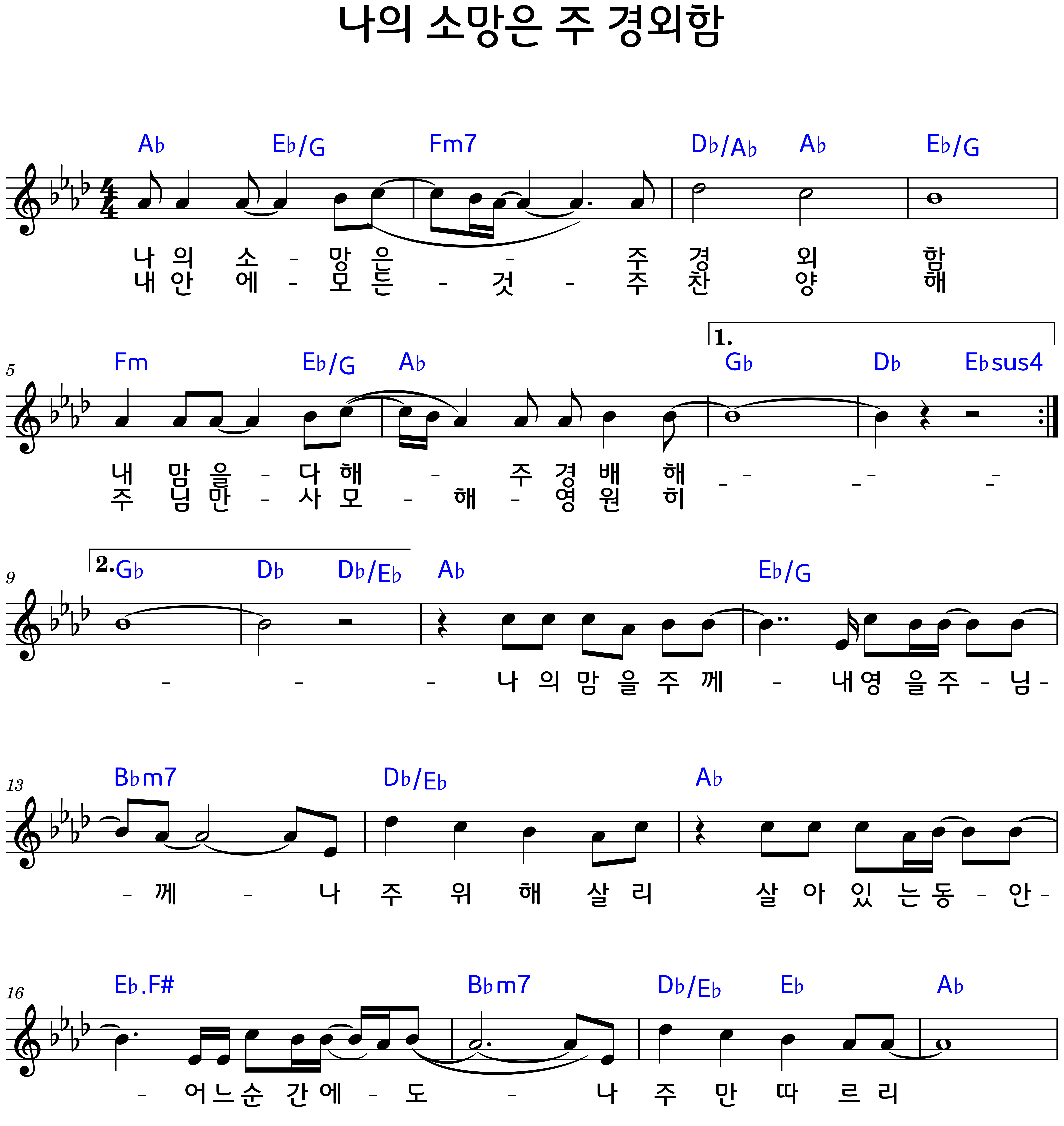 "나의 소망은 주 경외함" 악보F.G.Ab.A.코드