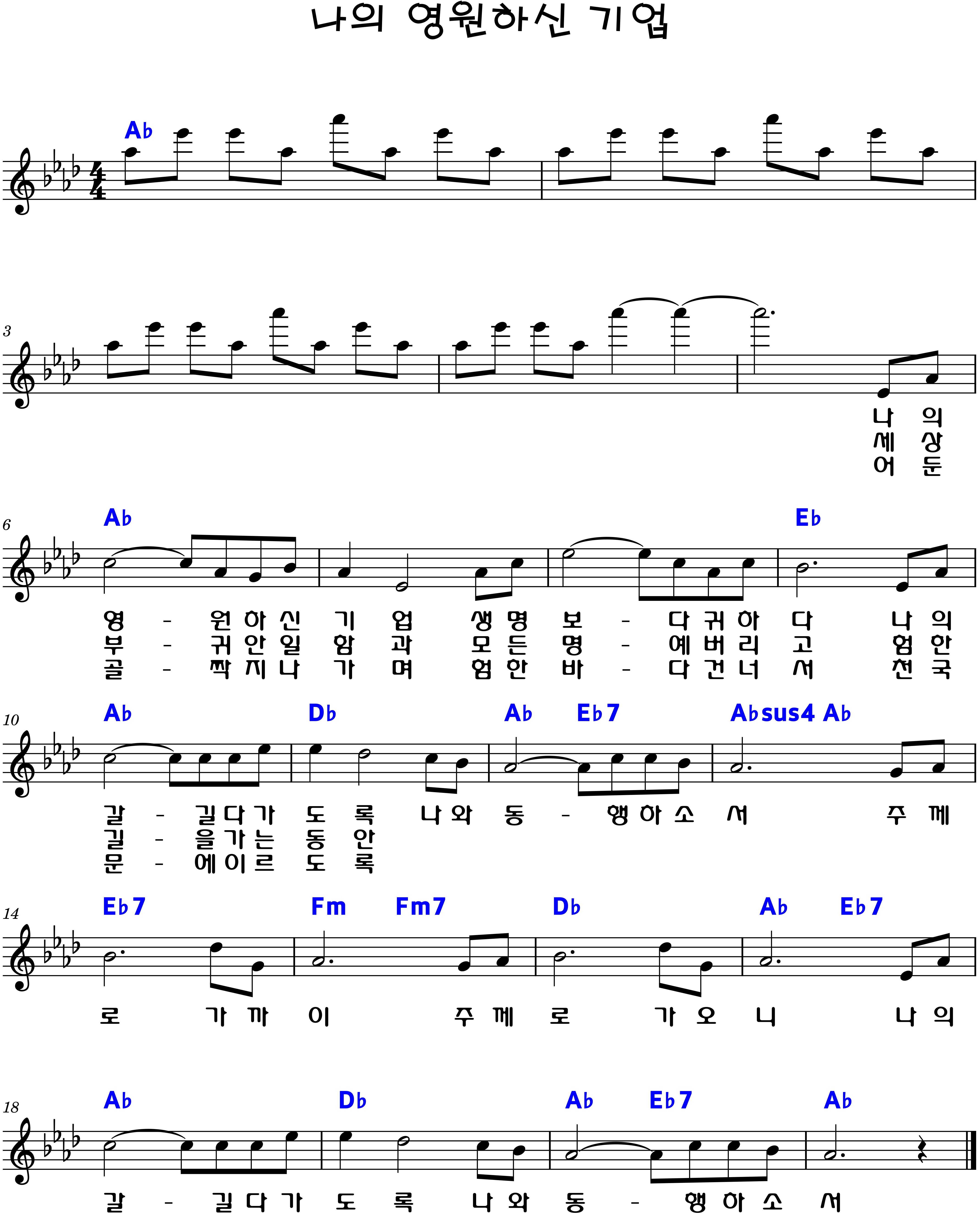 악보E.F.G.Ab.A코드(4박자 편곡 악보 포함)
