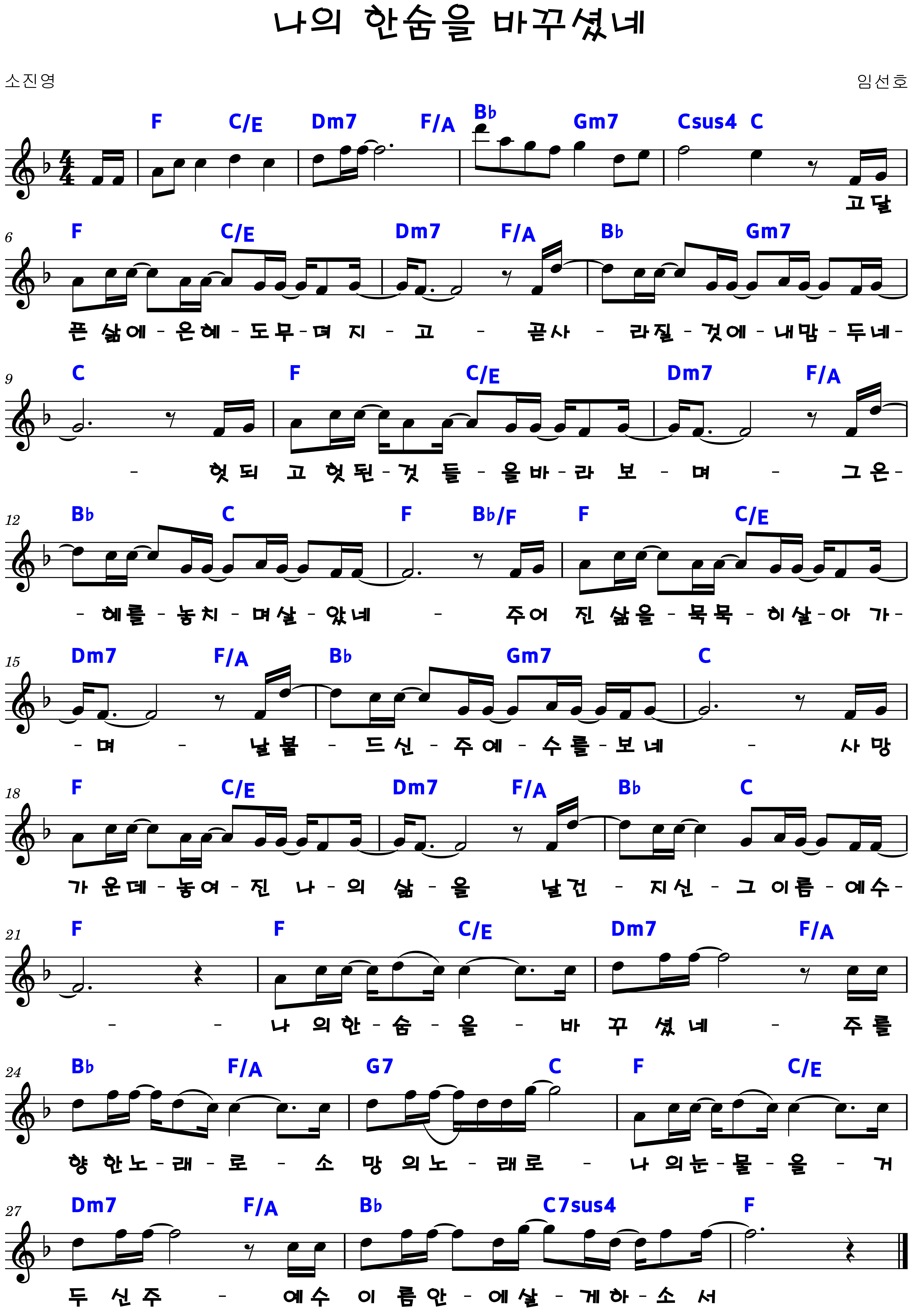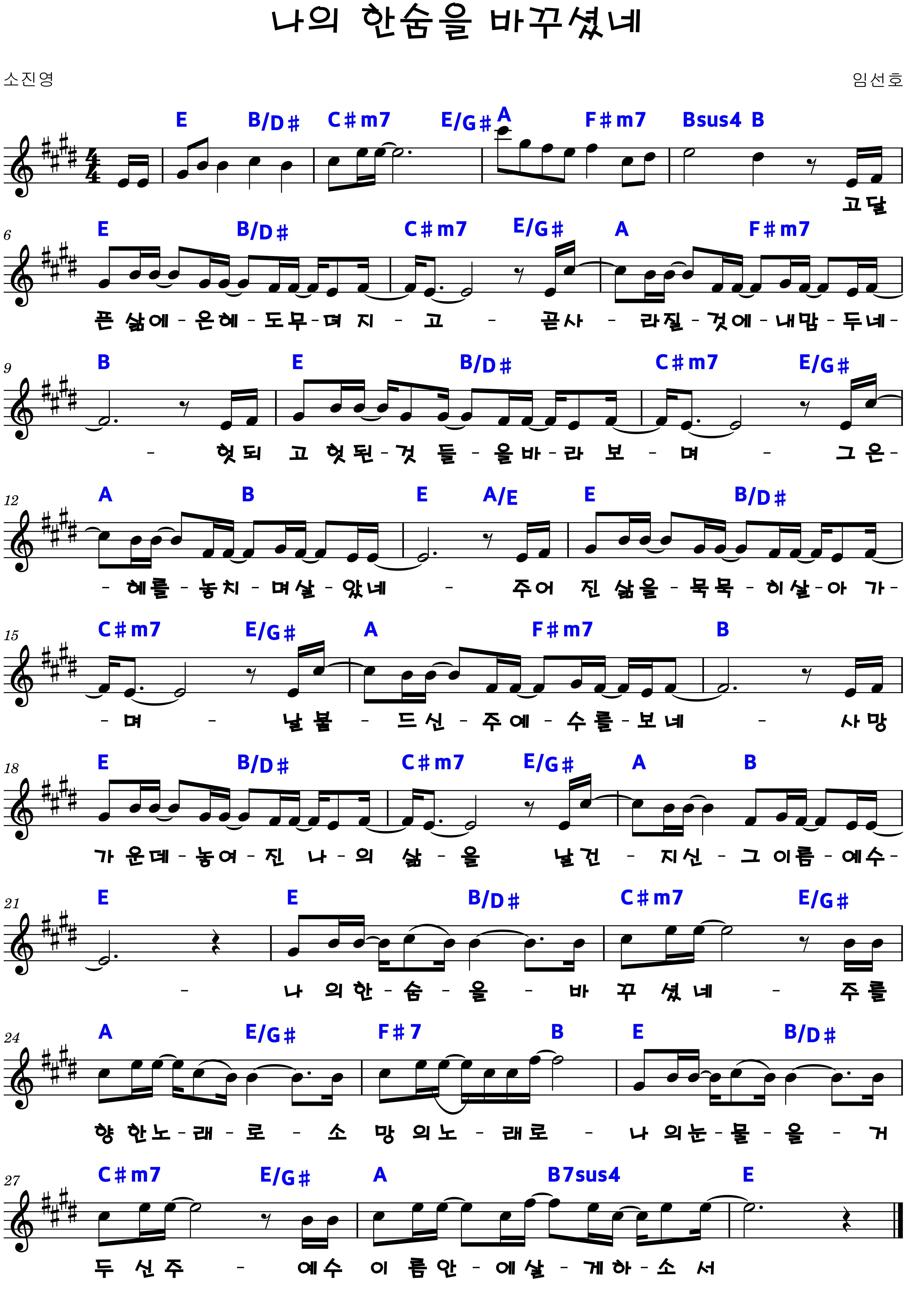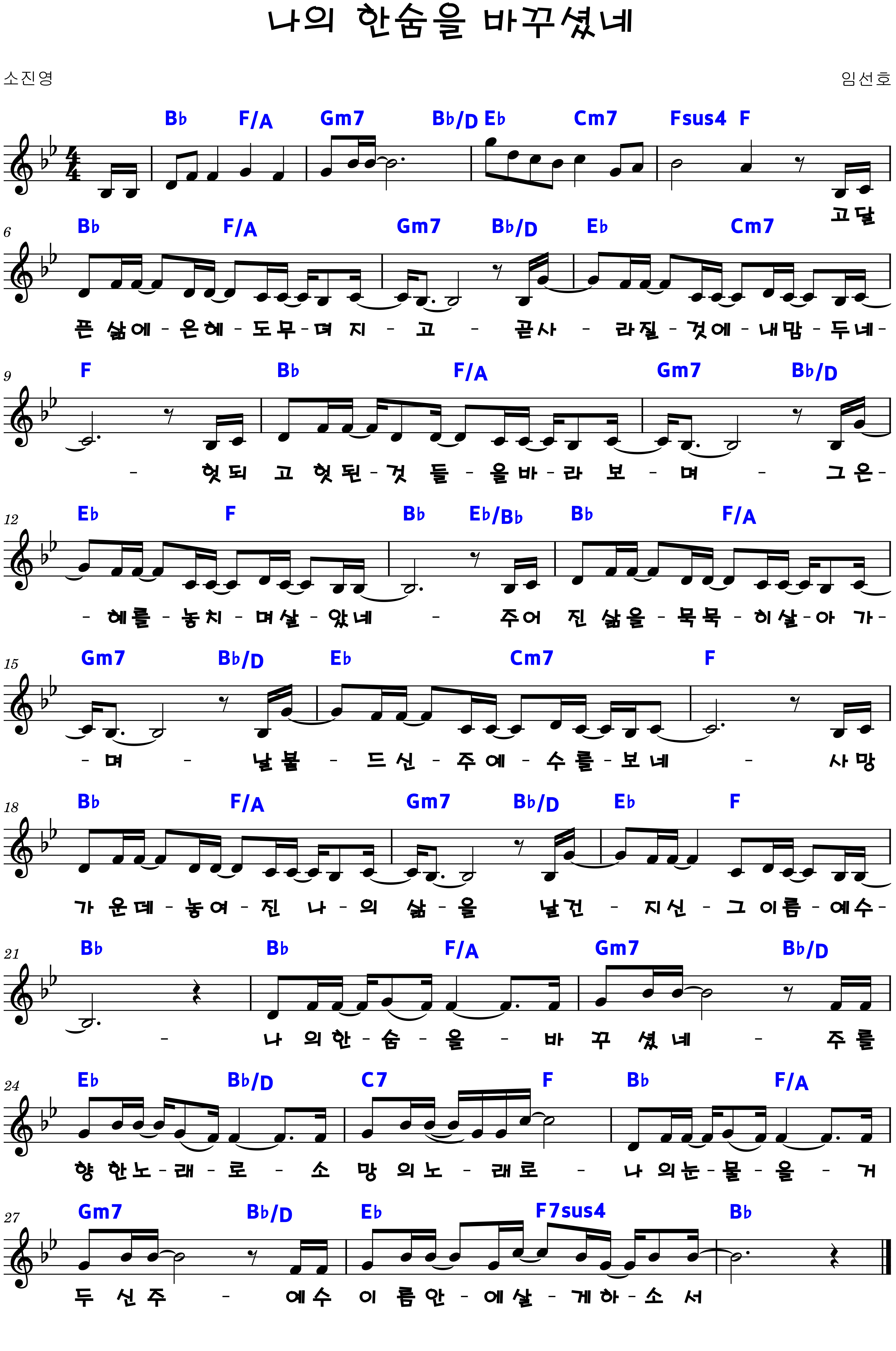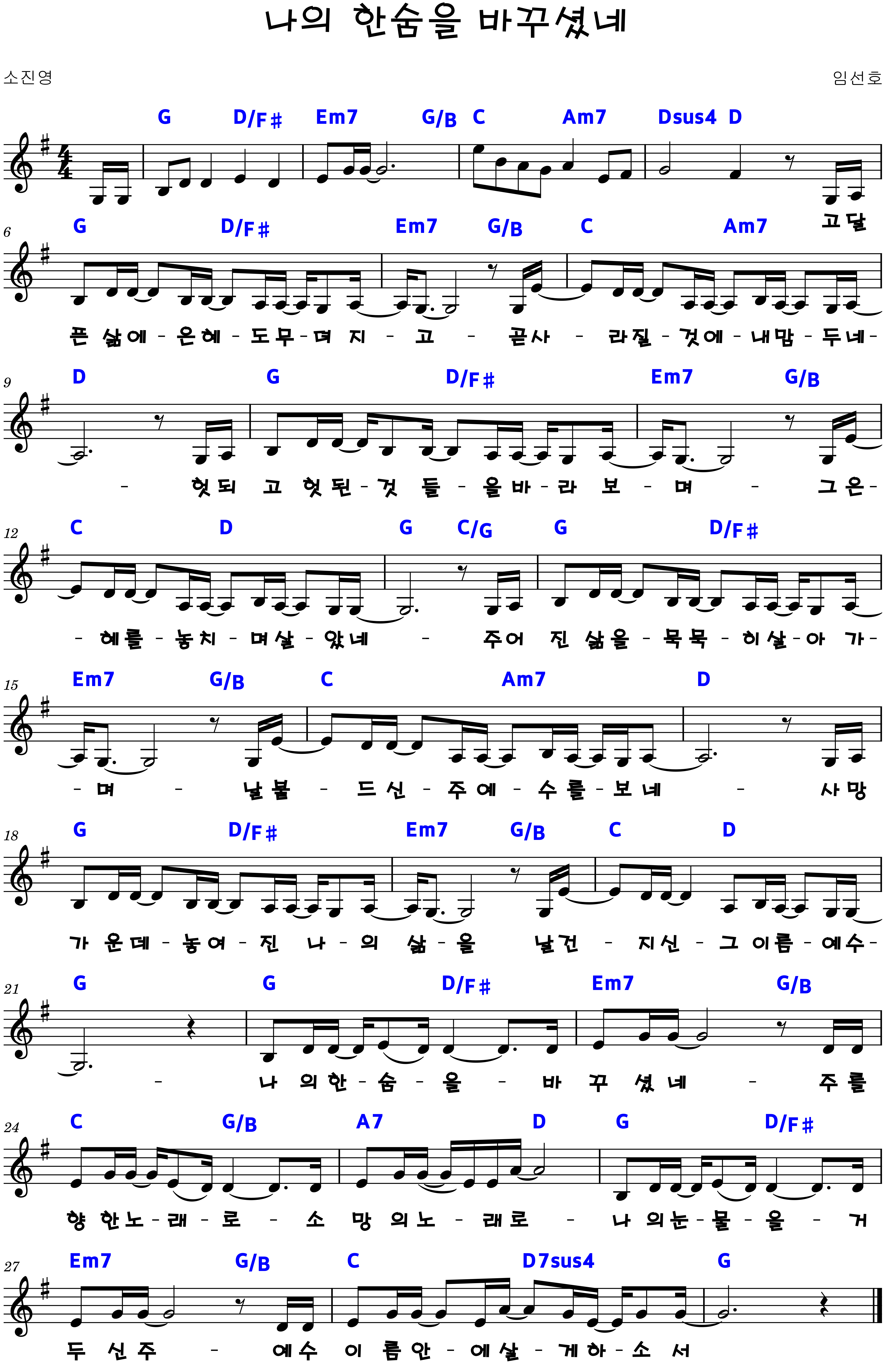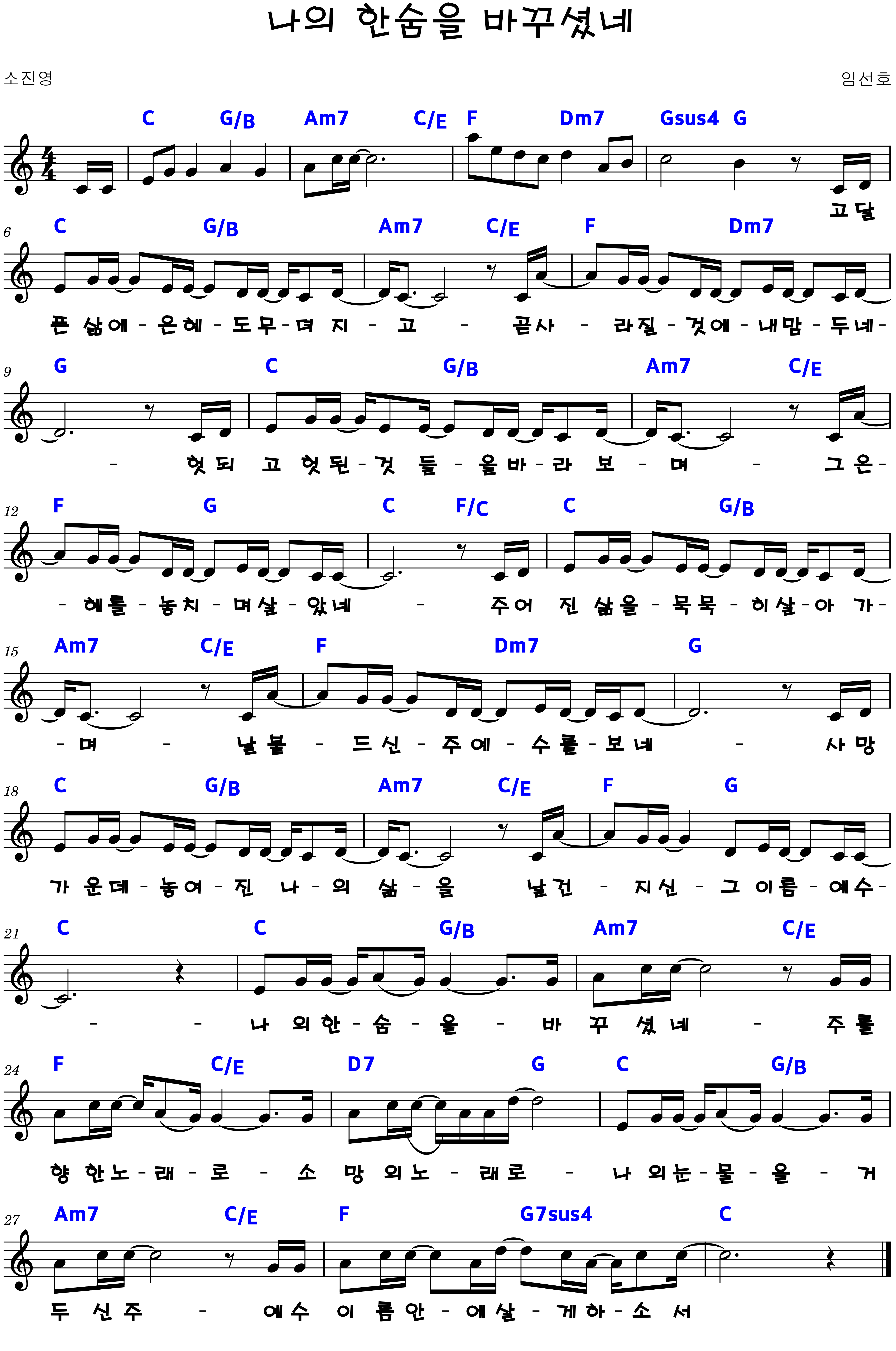 "나의 한숨을 바꾸셨네 주를 향한 노래로 소망의 노래로"