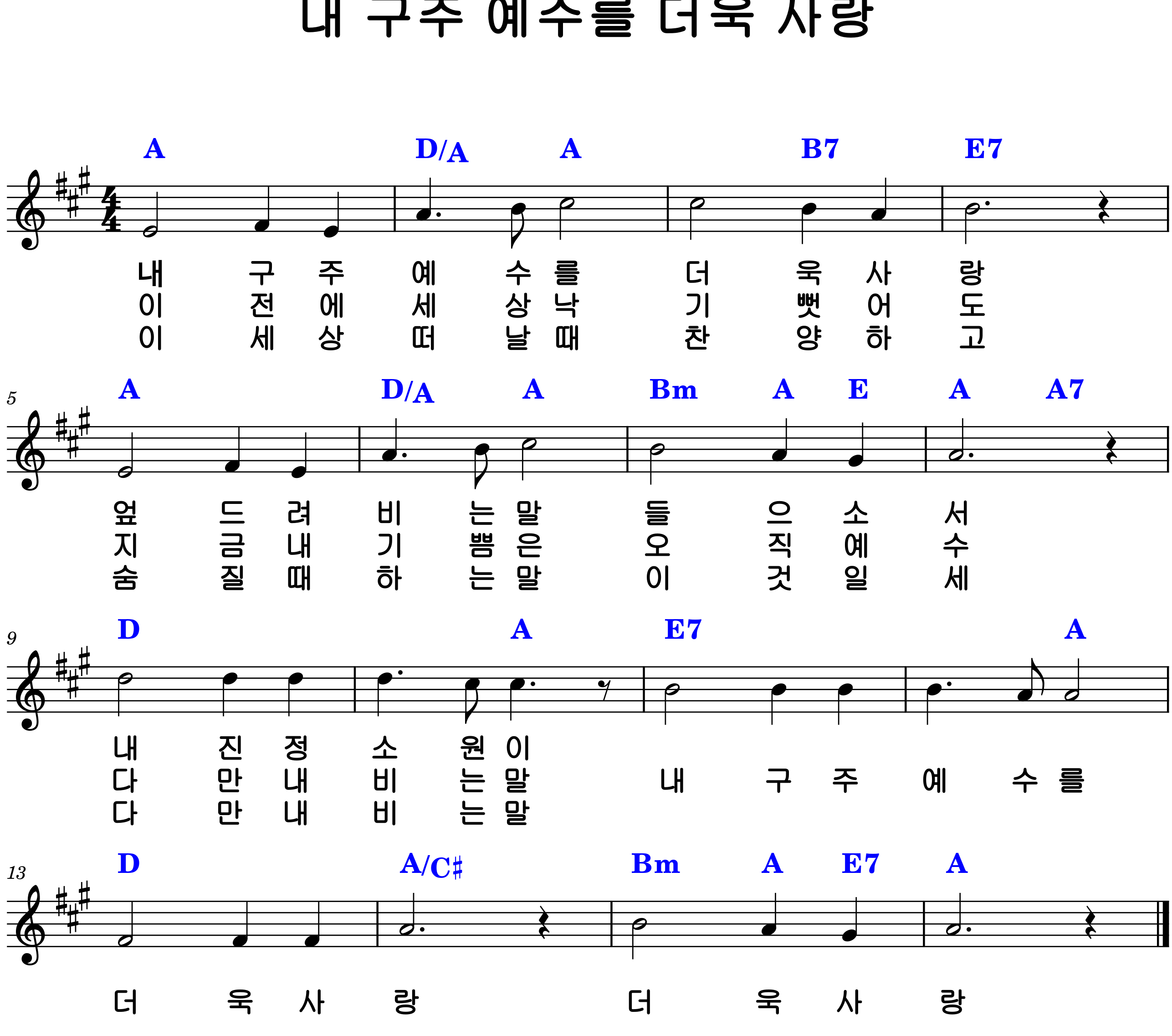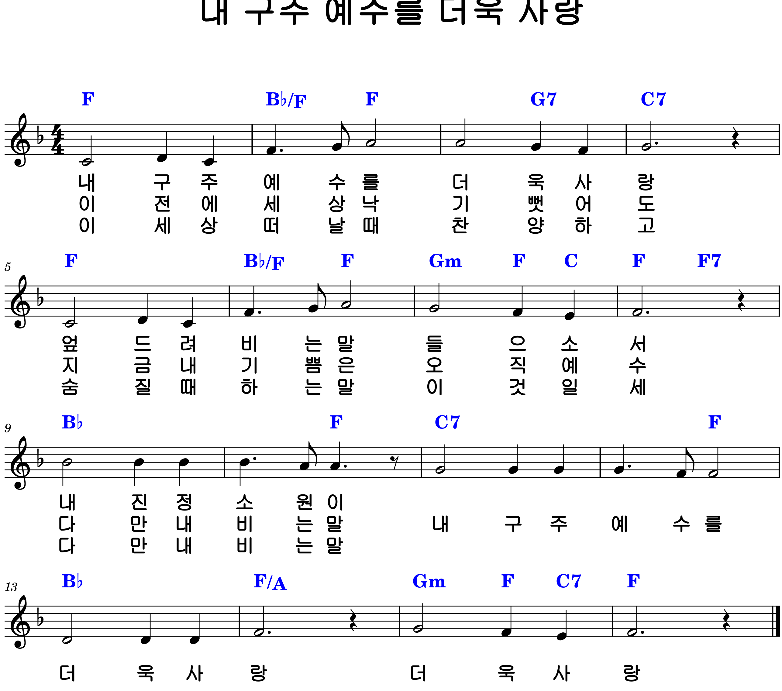 "다만 내 비는 말 내 구주 예수를 더욱 사랑 더욱 사랑"