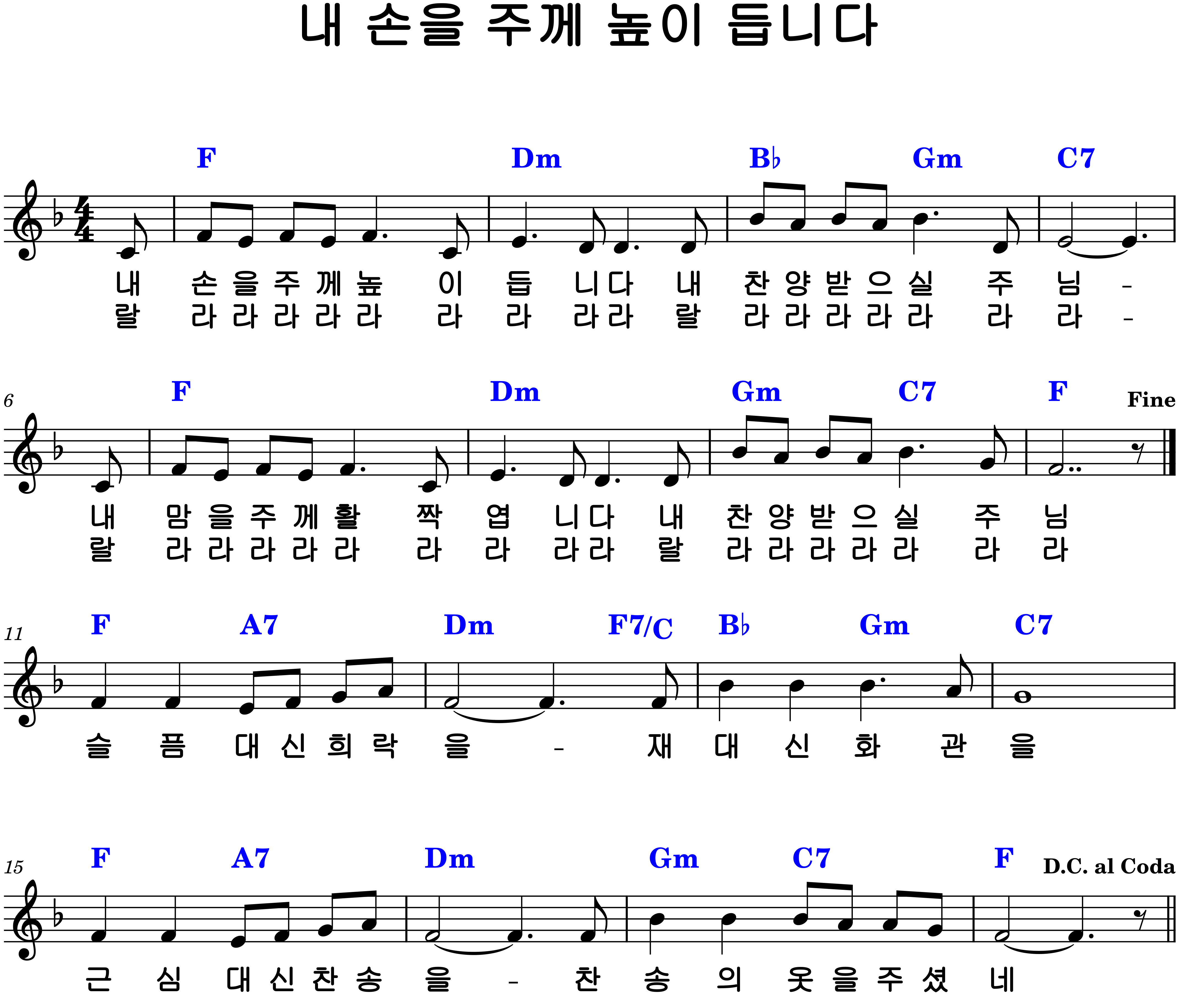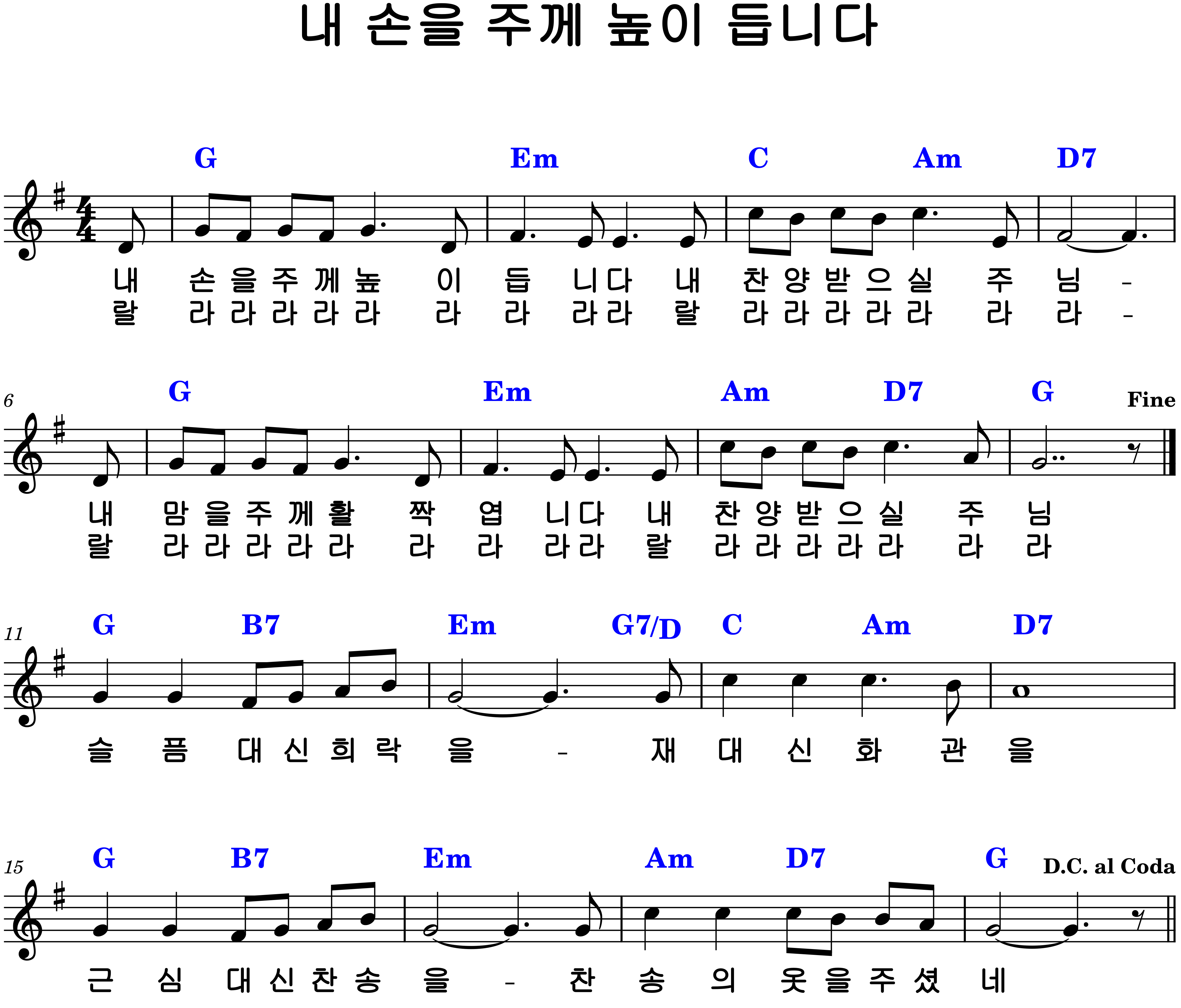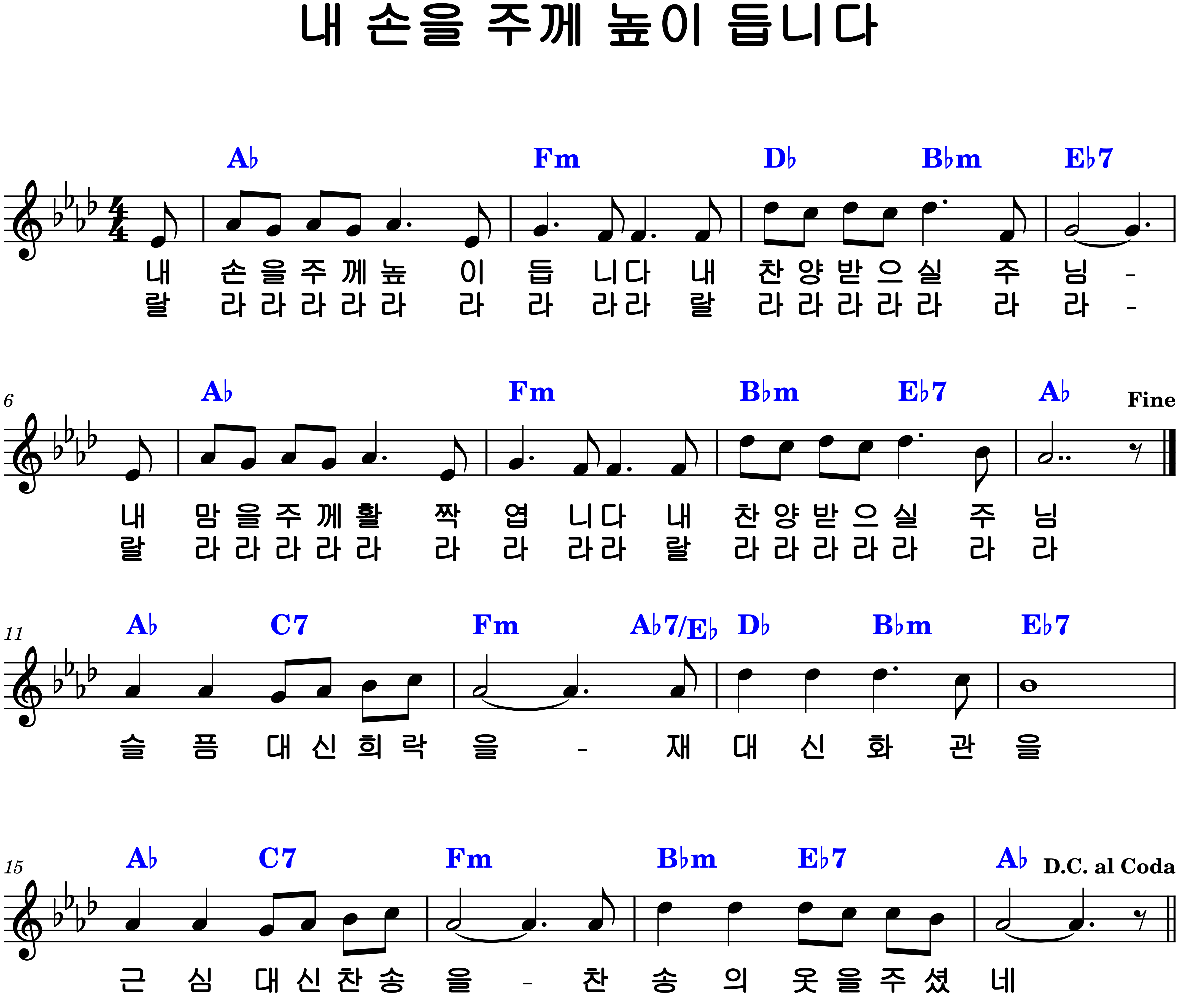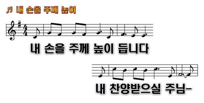 "내 손을 주께 높이 듭니다" 악보G.Ab.A.Bb.B.C.D코드