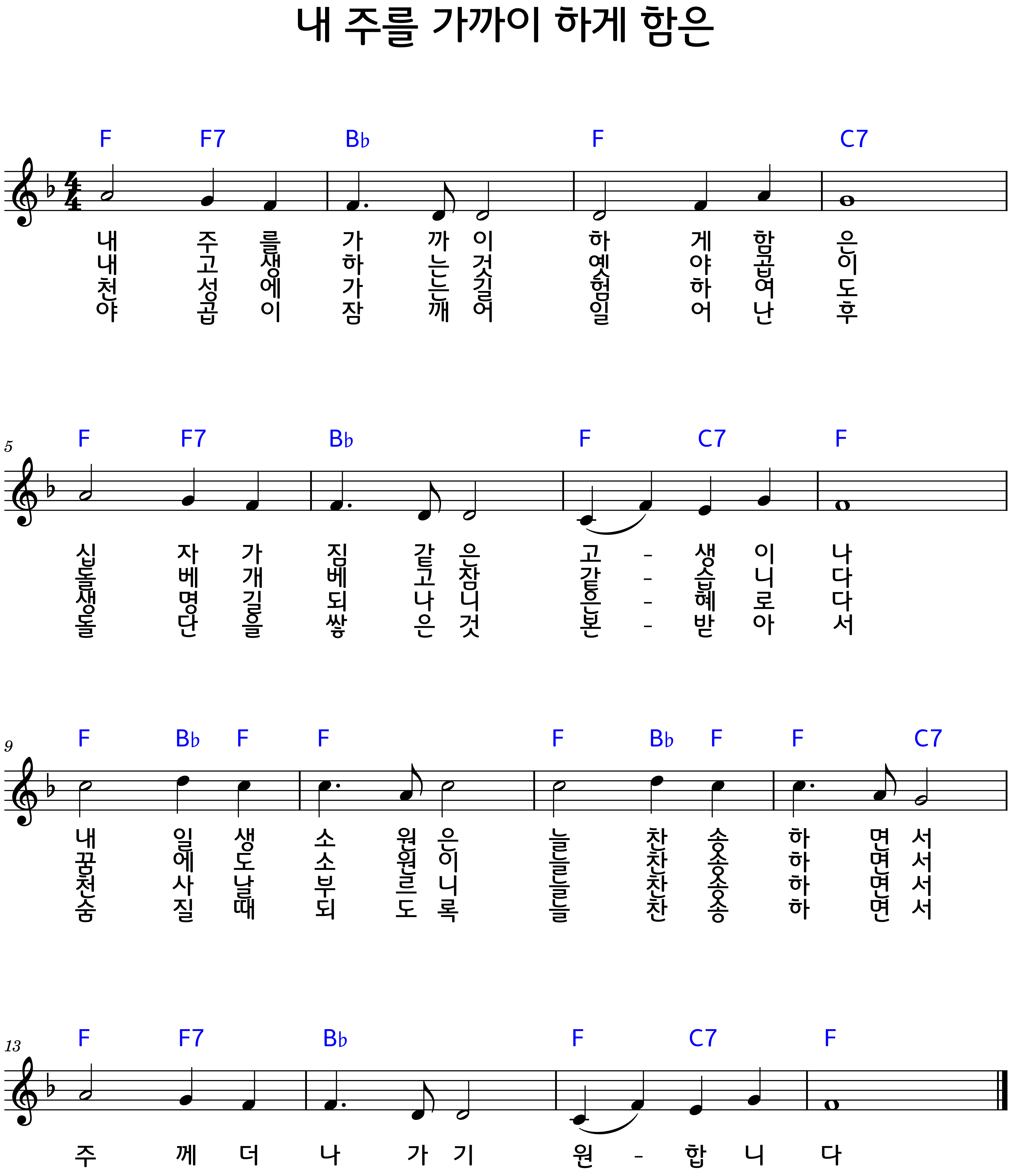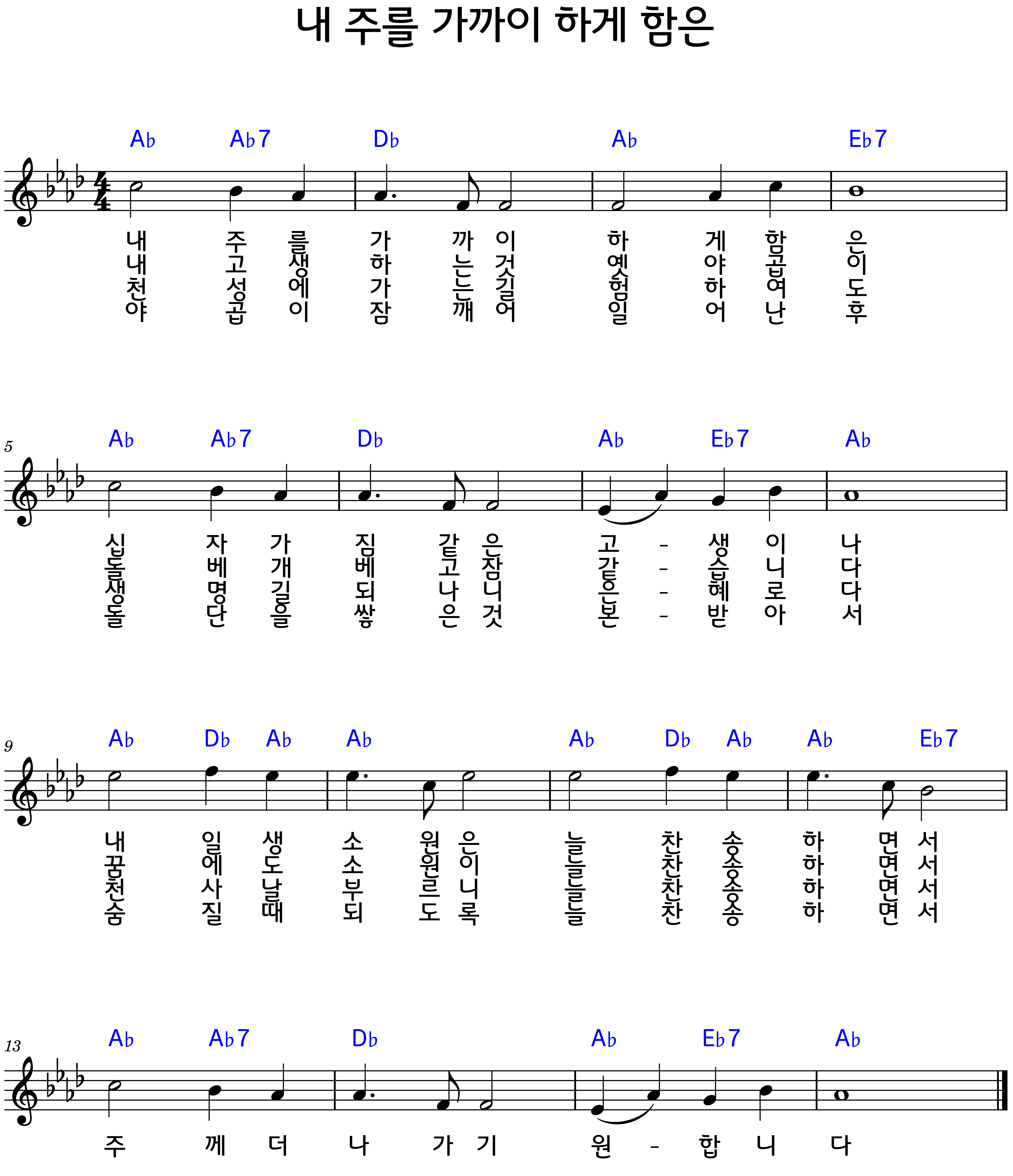 "내 주를 가까이 하게함은" 악보F.G.Ab.A.코드