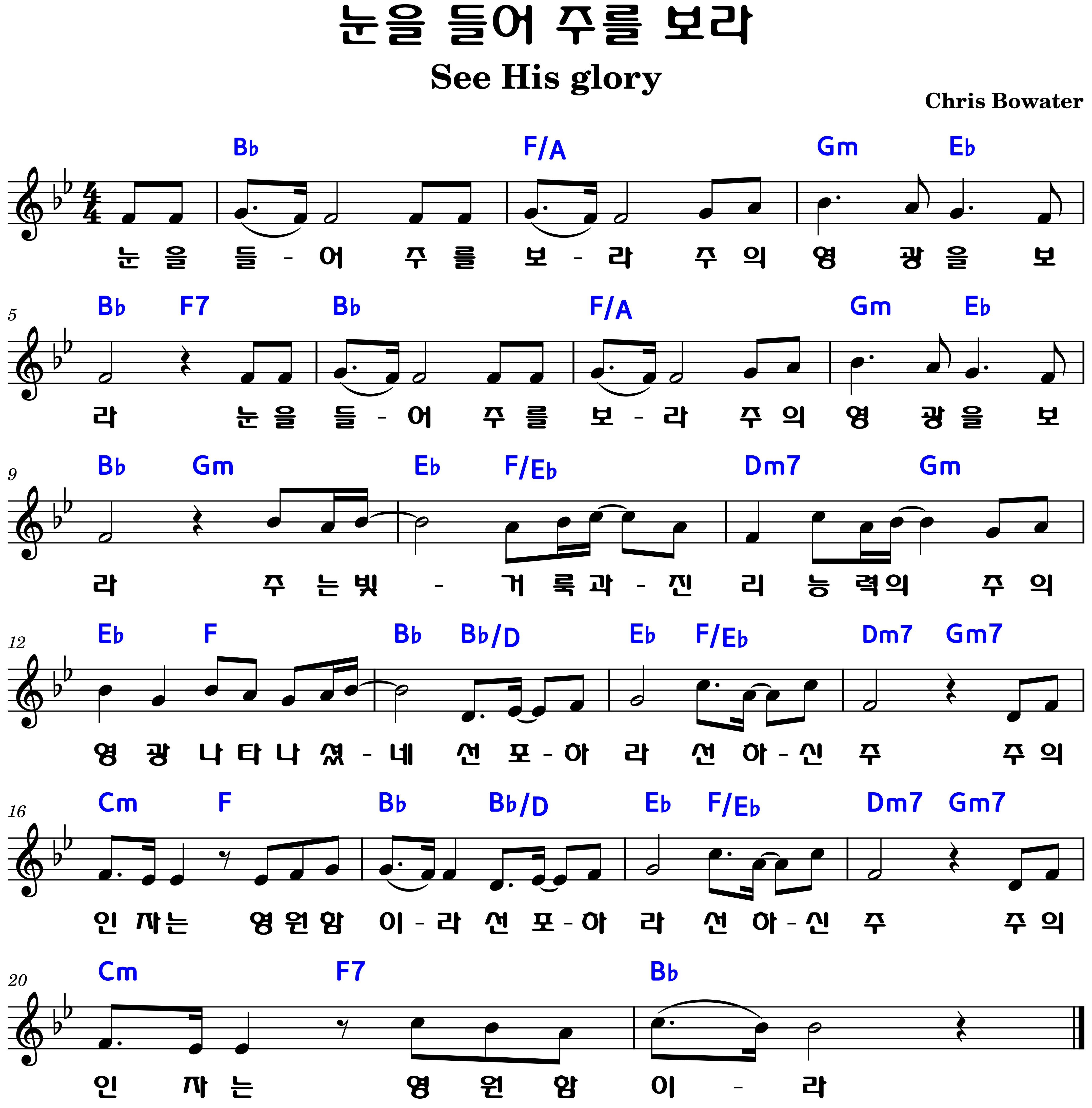 눈을 들어 주를 보라 악보Bb.B.C.D코드