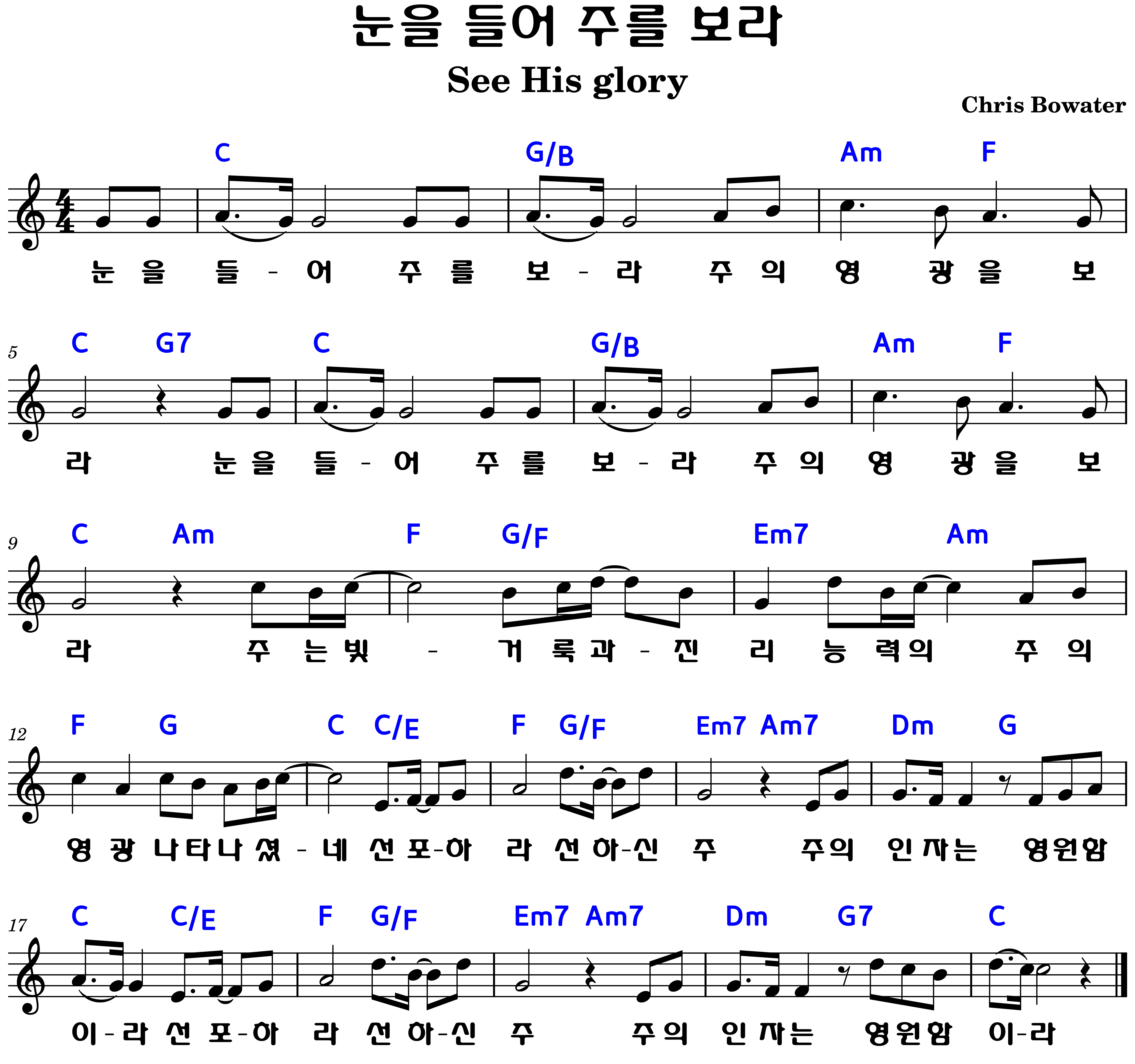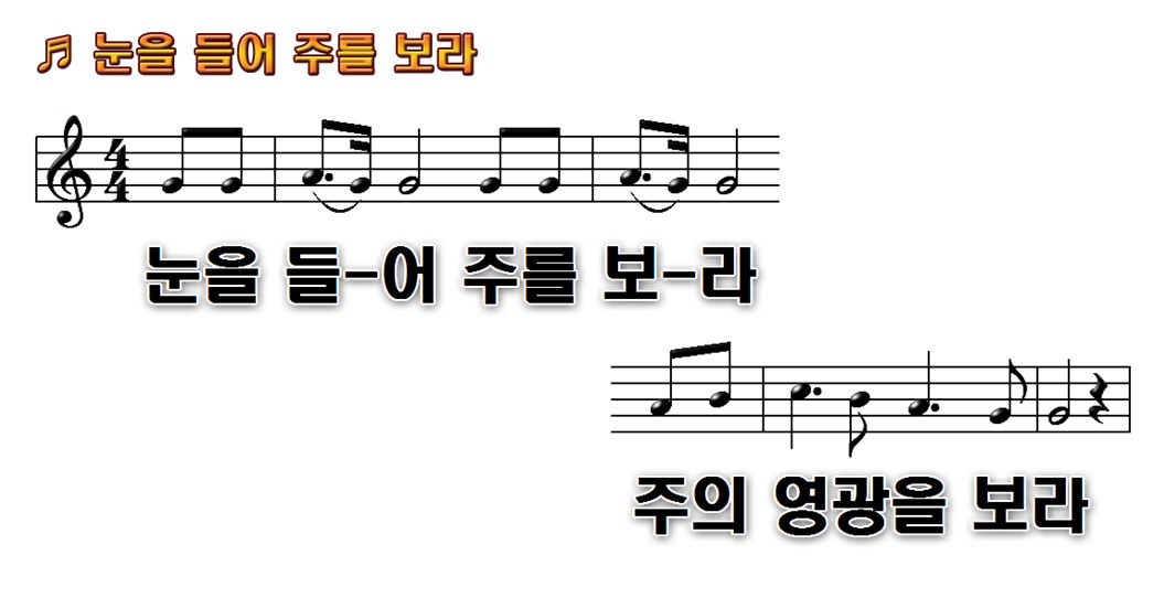"눈을 들-어 주를 보-라 주의 영광을 보라"