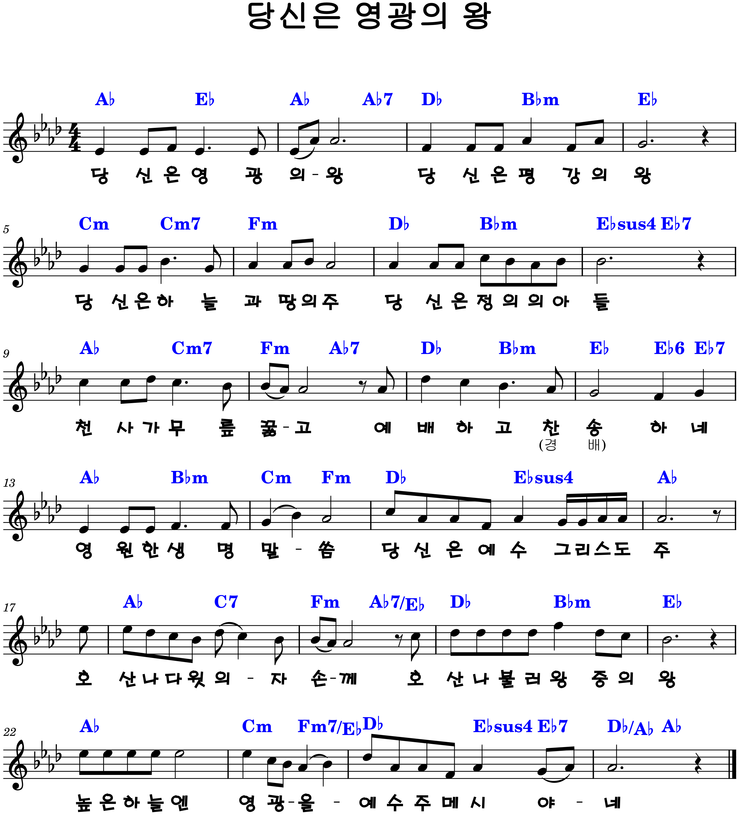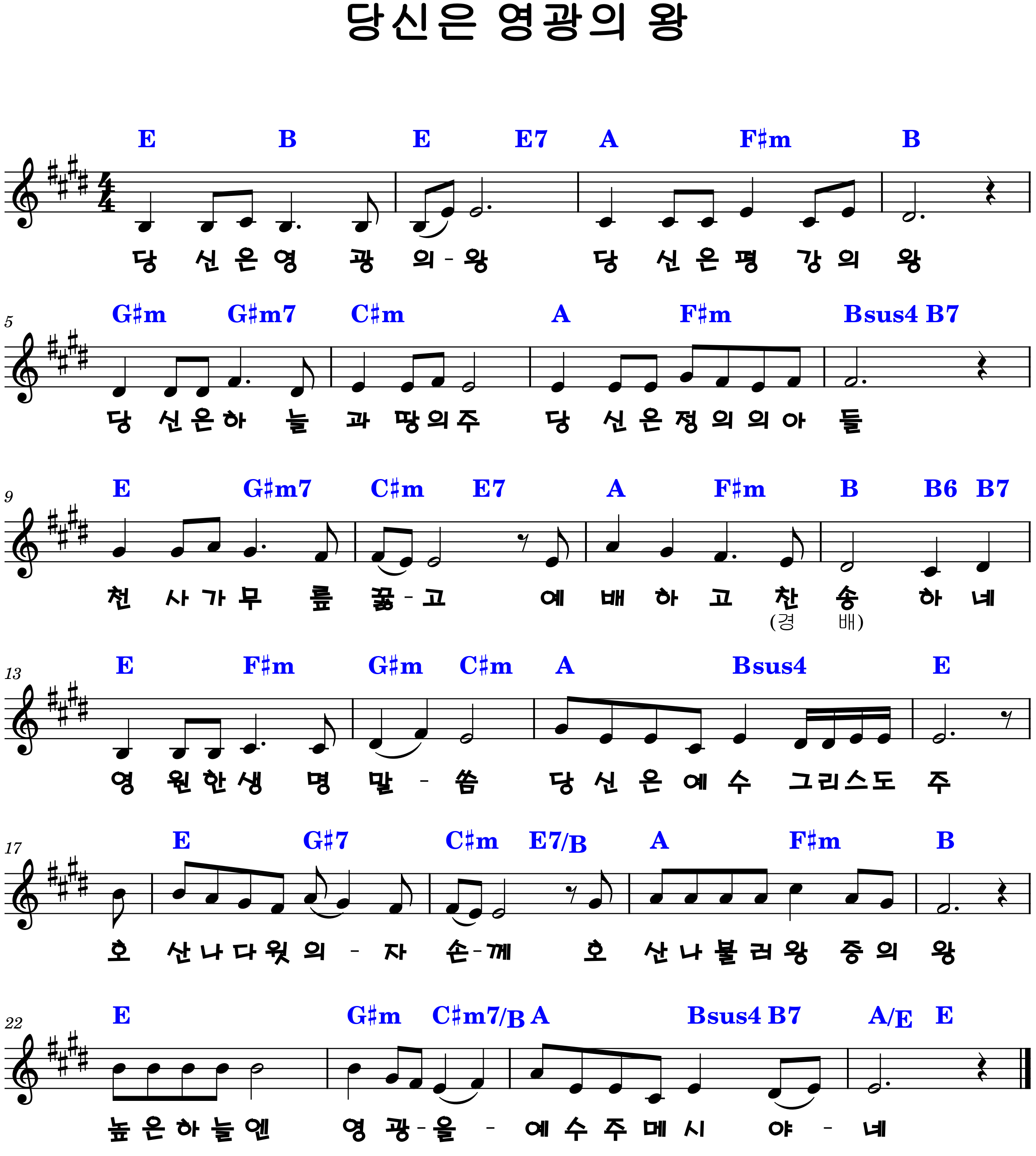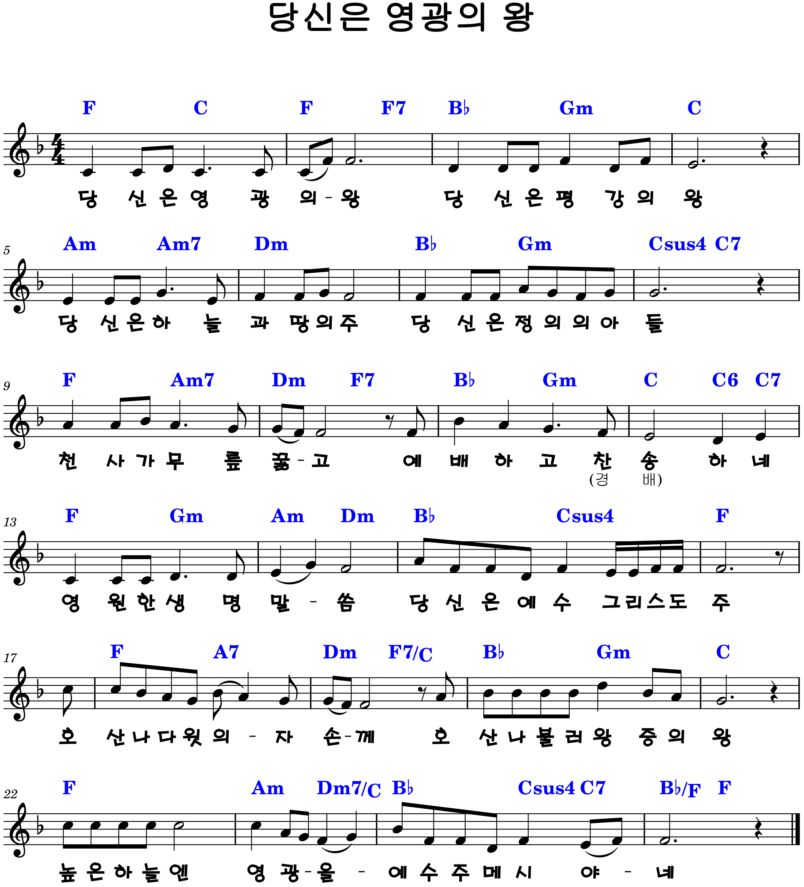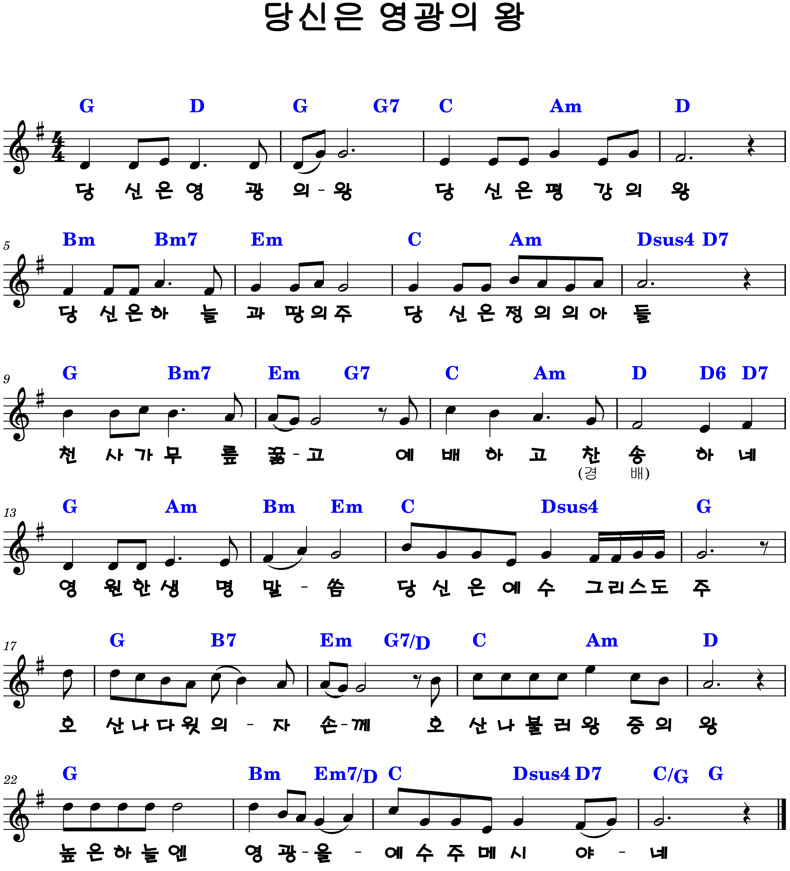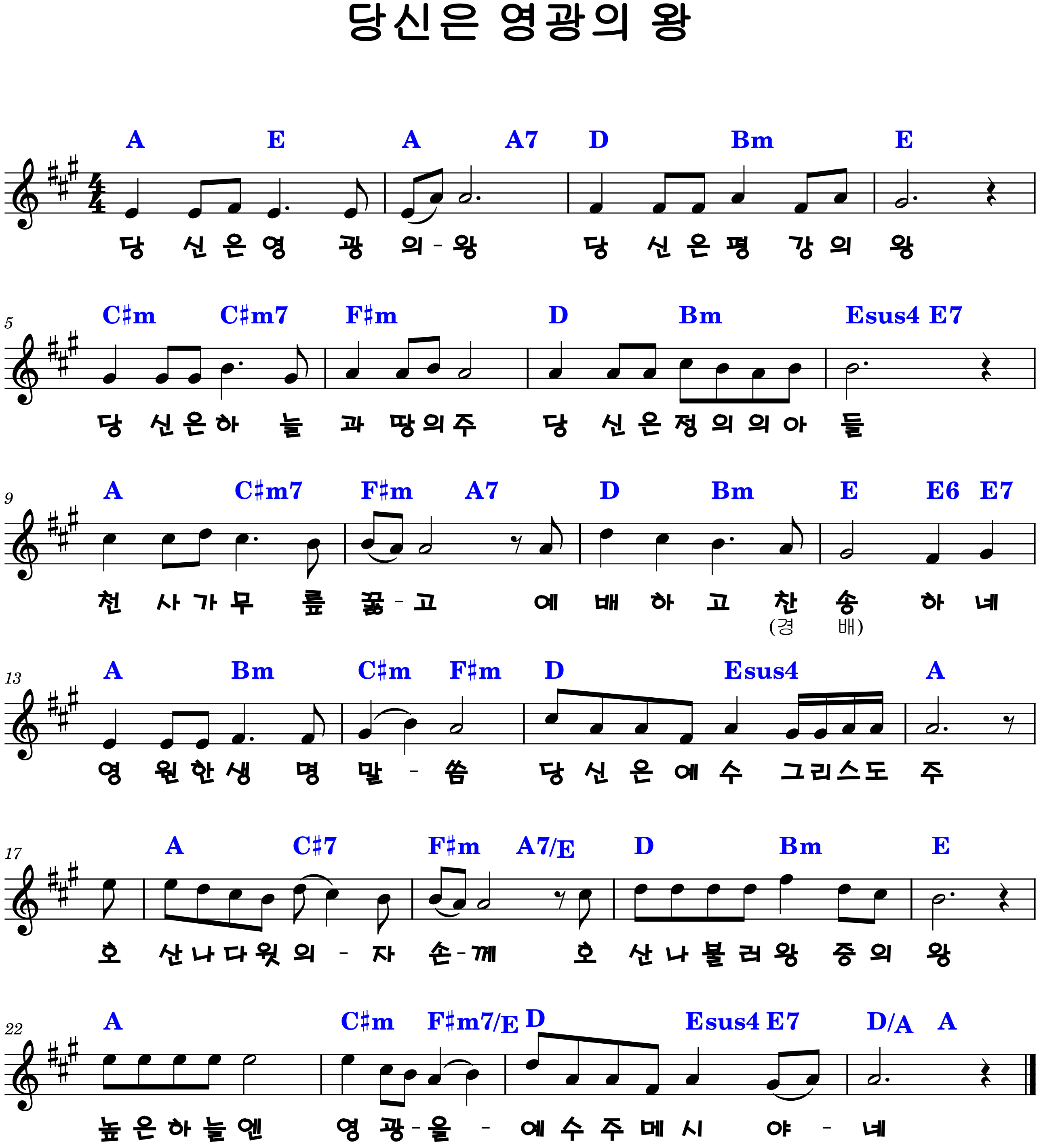 "당신은 영광의 왕, 당신은 평강의 왕"