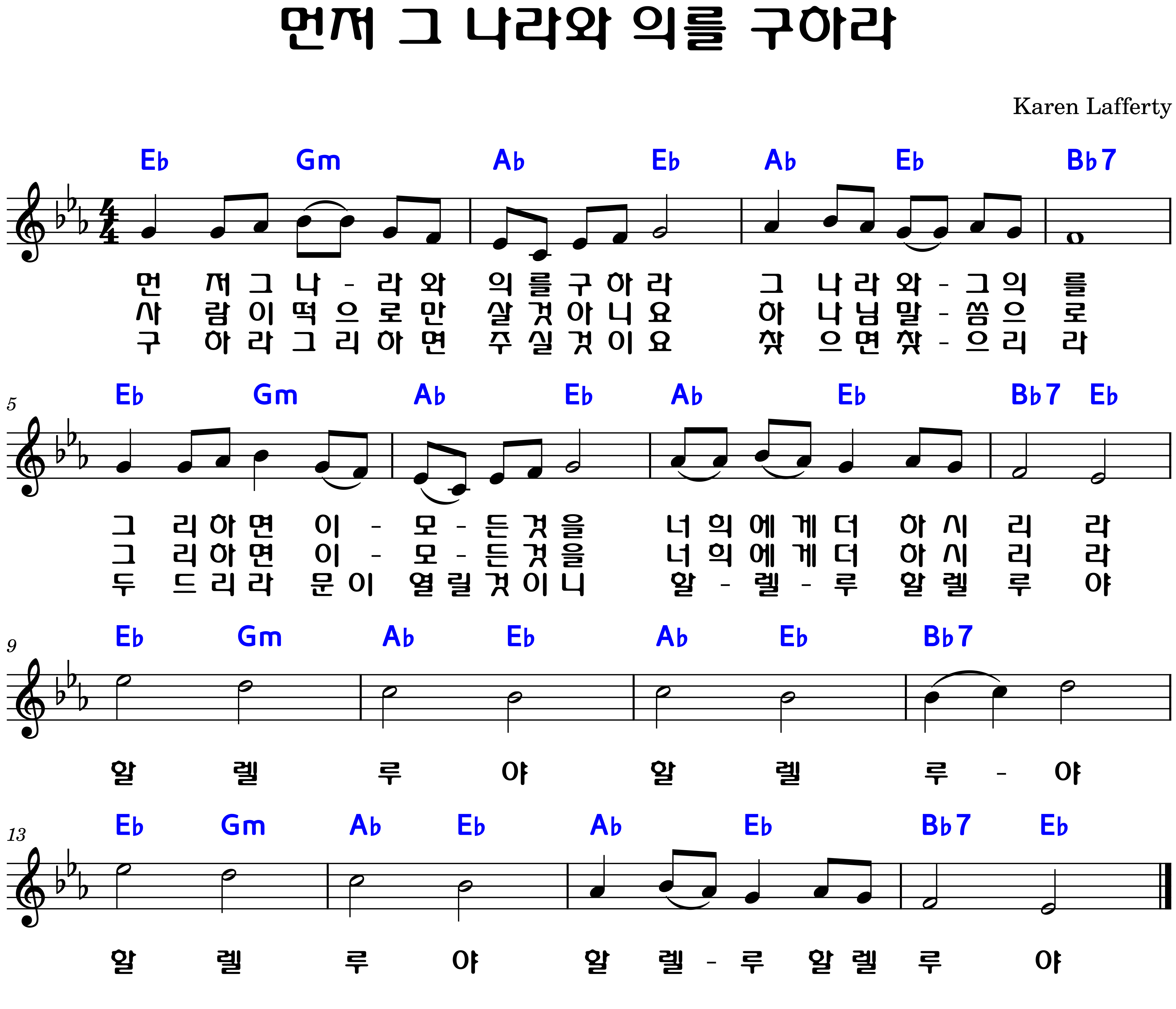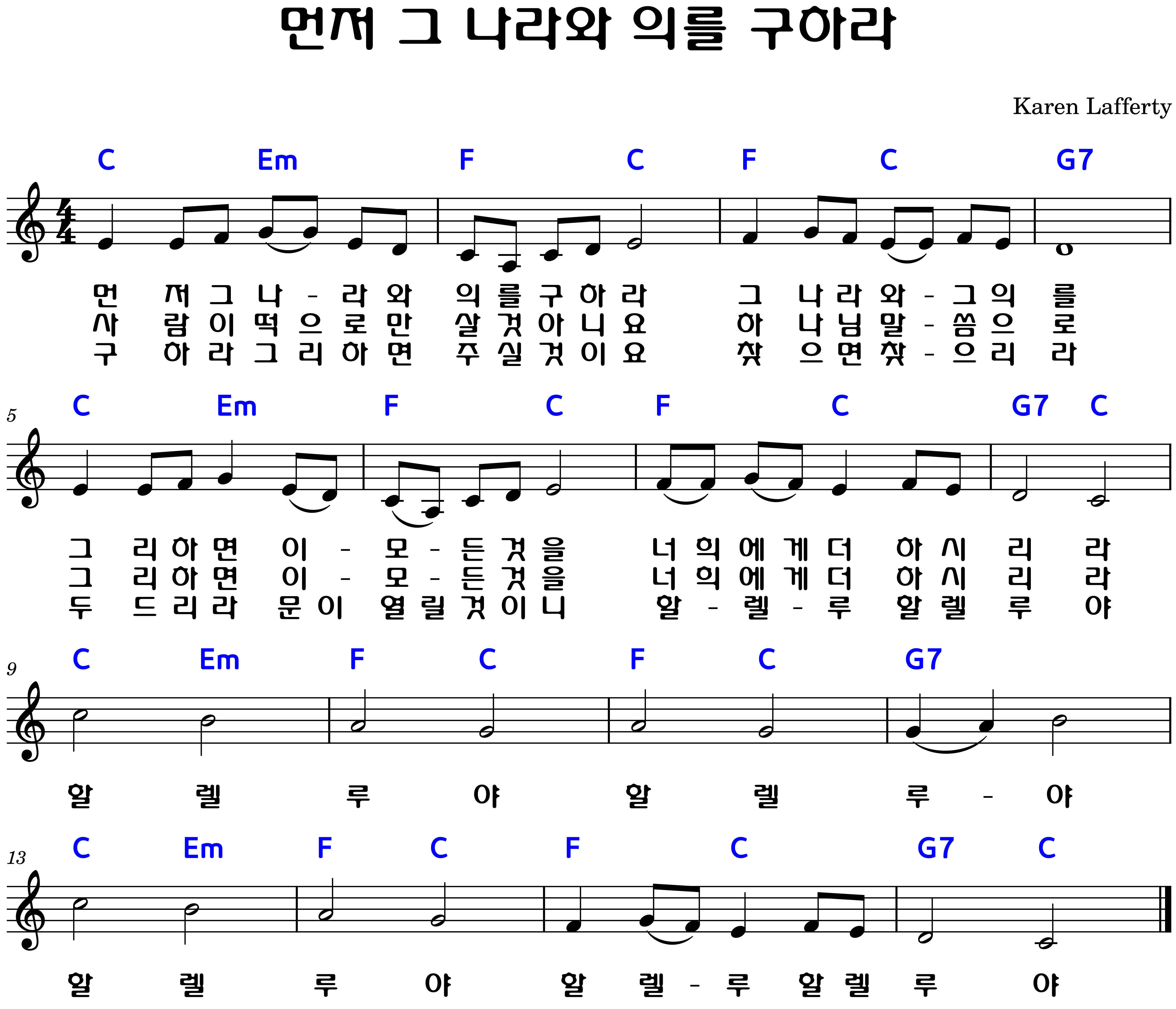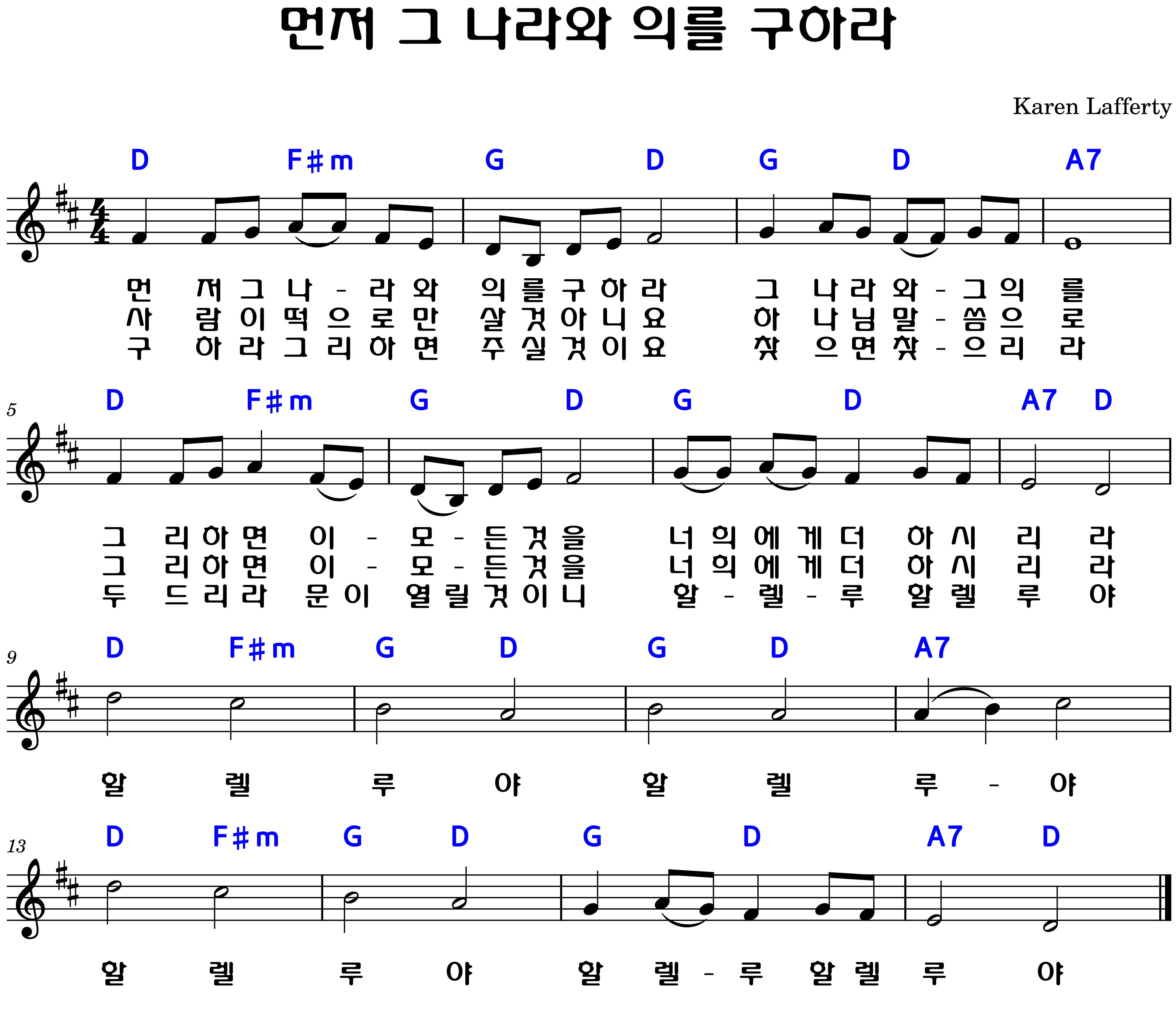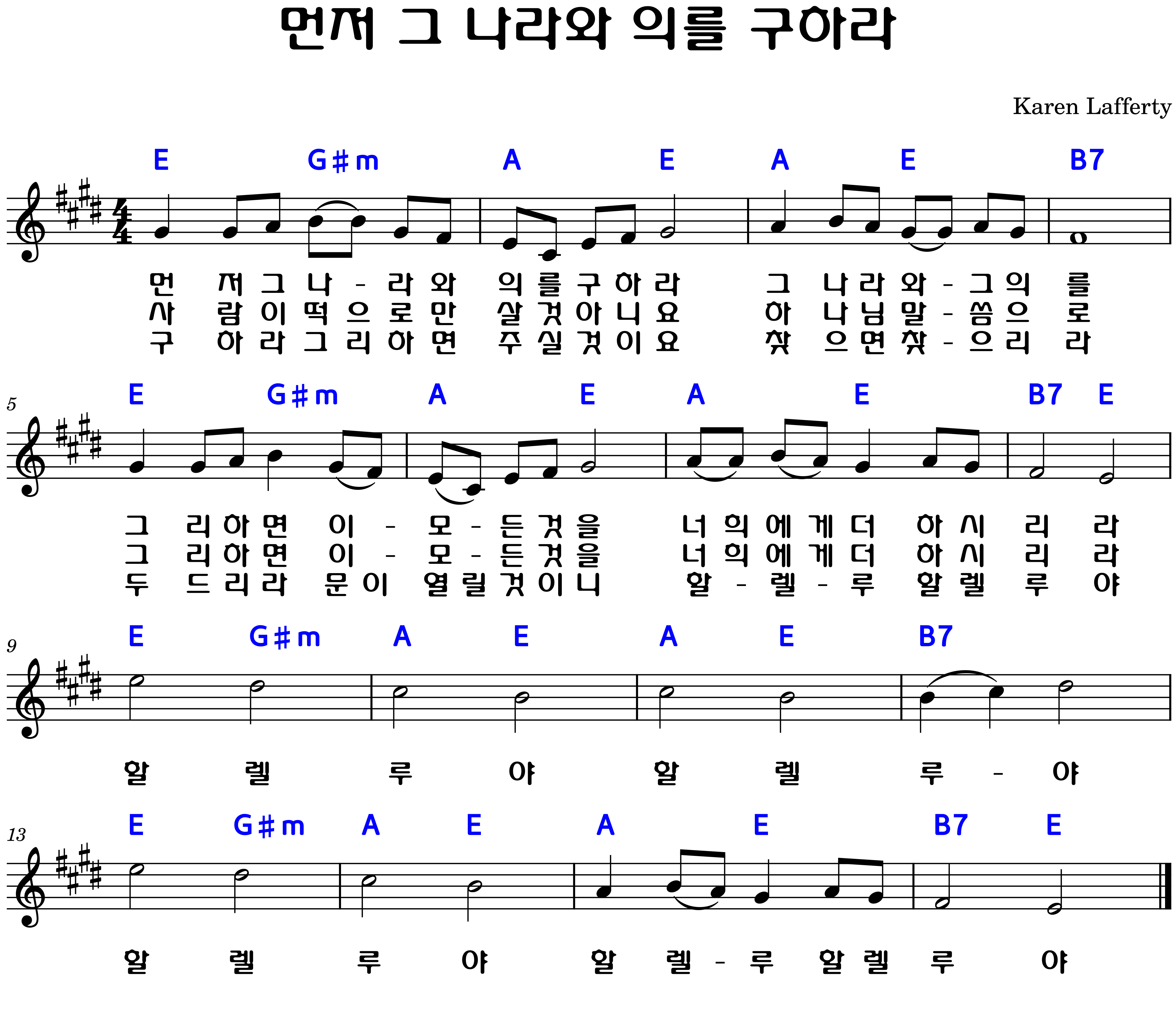 “먼저 그 나라와 의를 구하라 / 그 나라와 그 의를 / 그리하면 이 모든 것을 / 너희에게 더하시리라”
