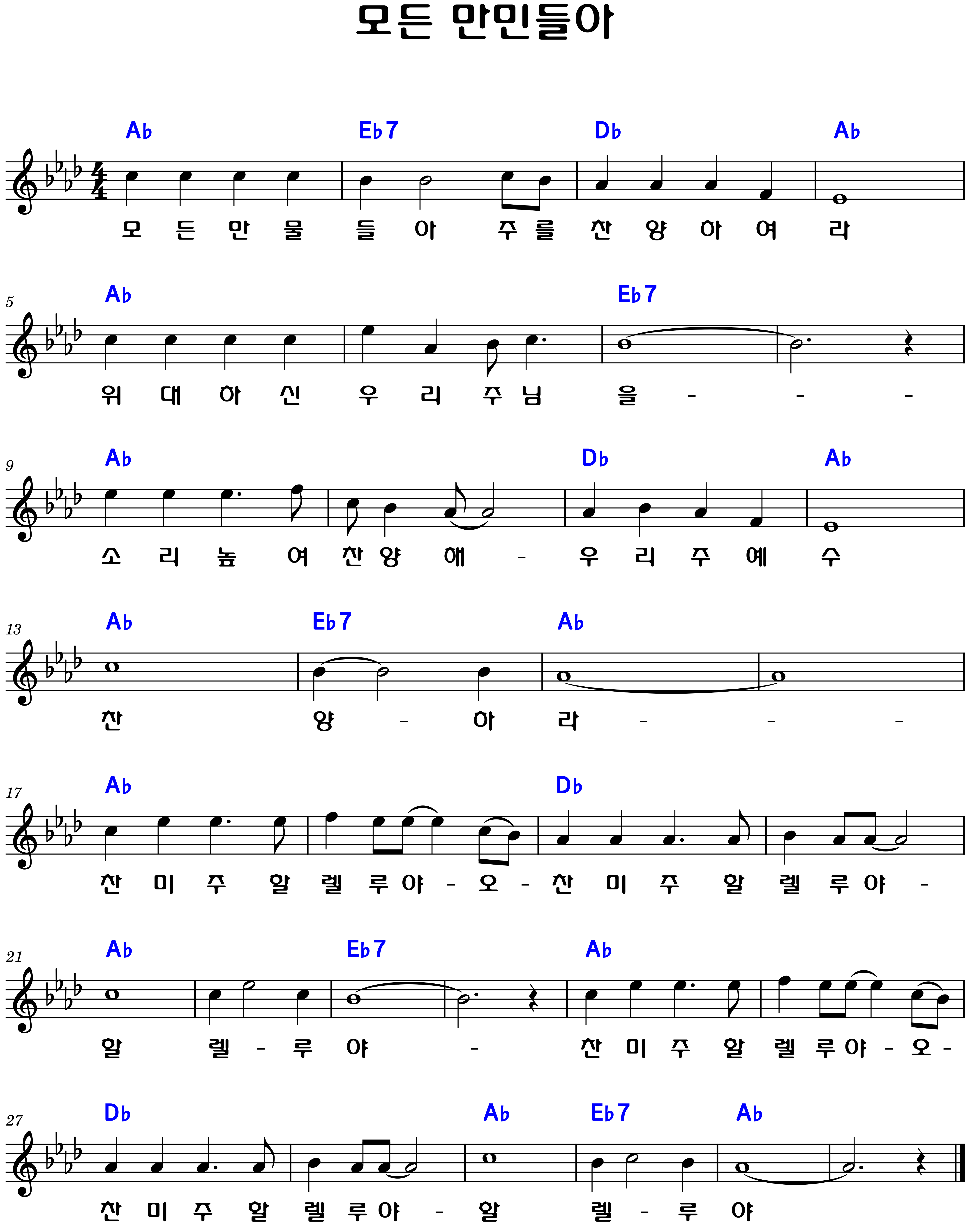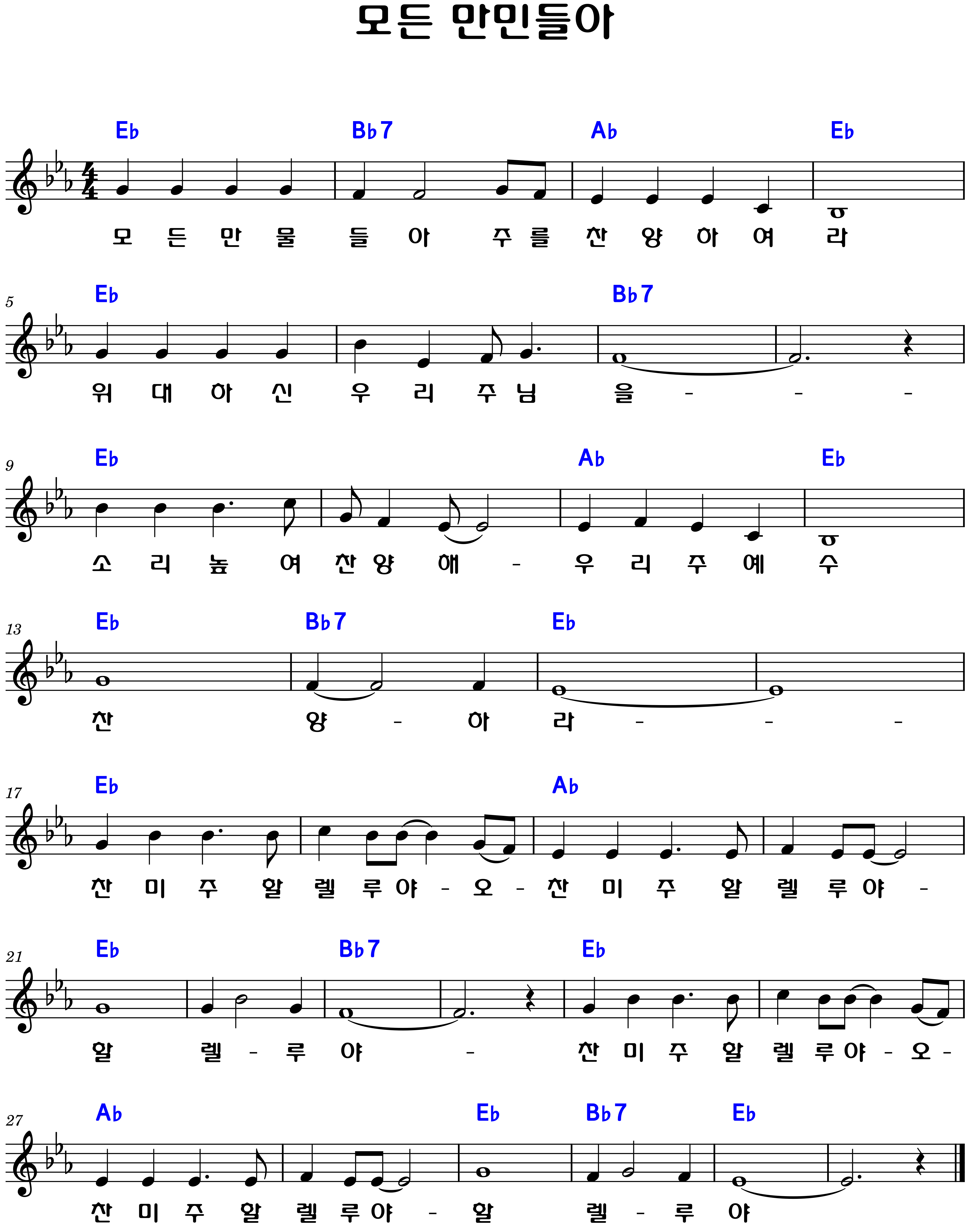 "모든 만민들아" 악보Eb.E.F.G.Ab.A.코드