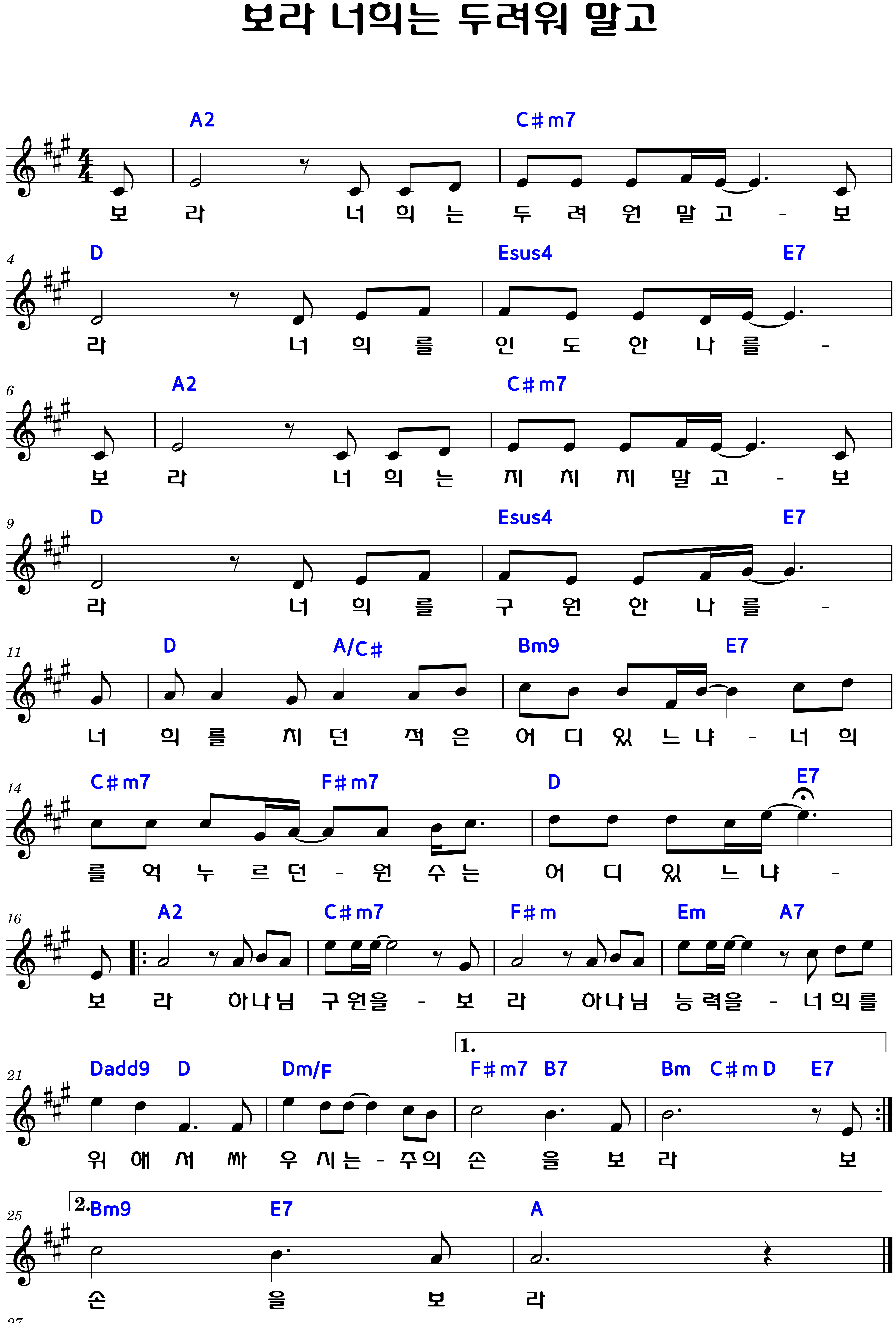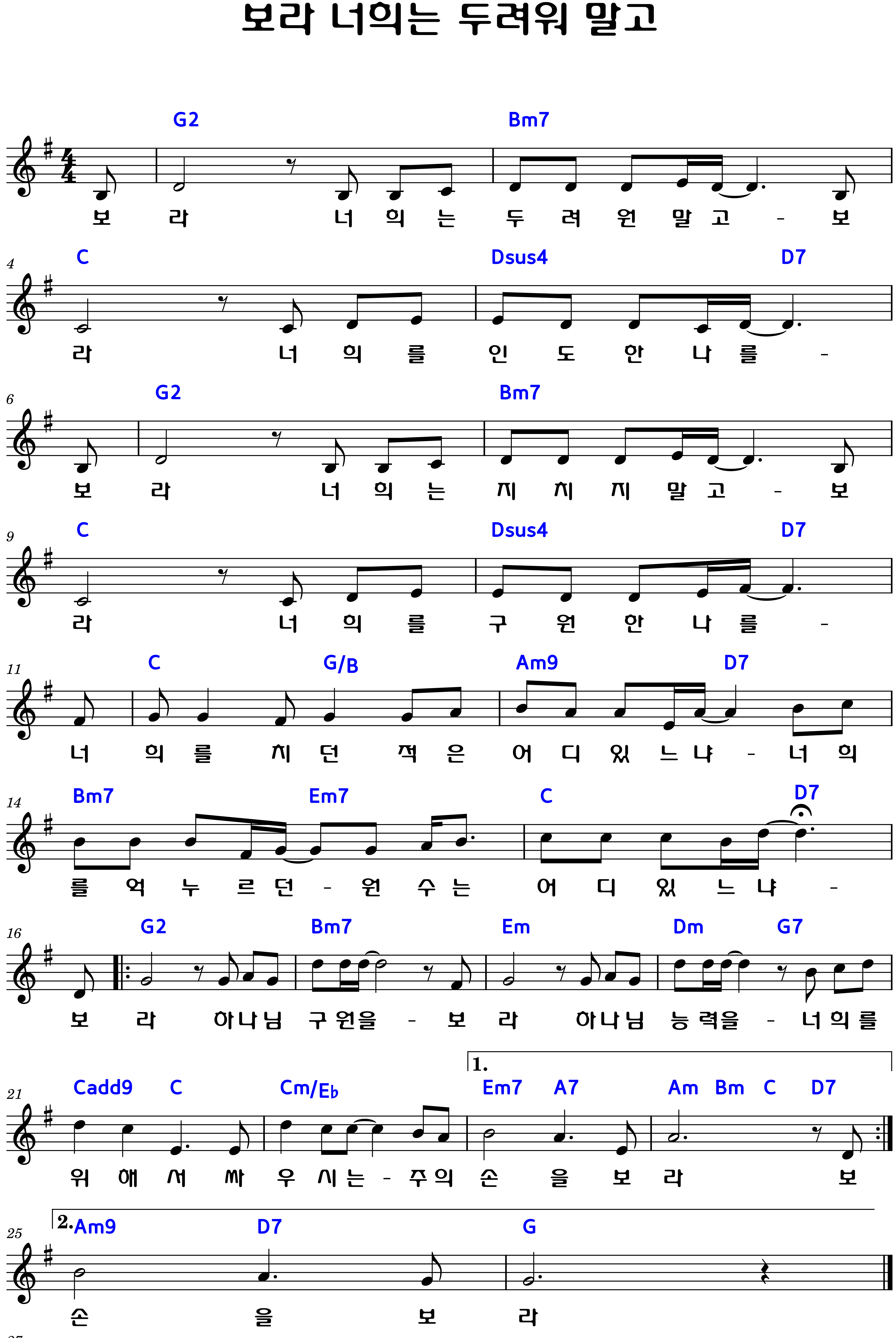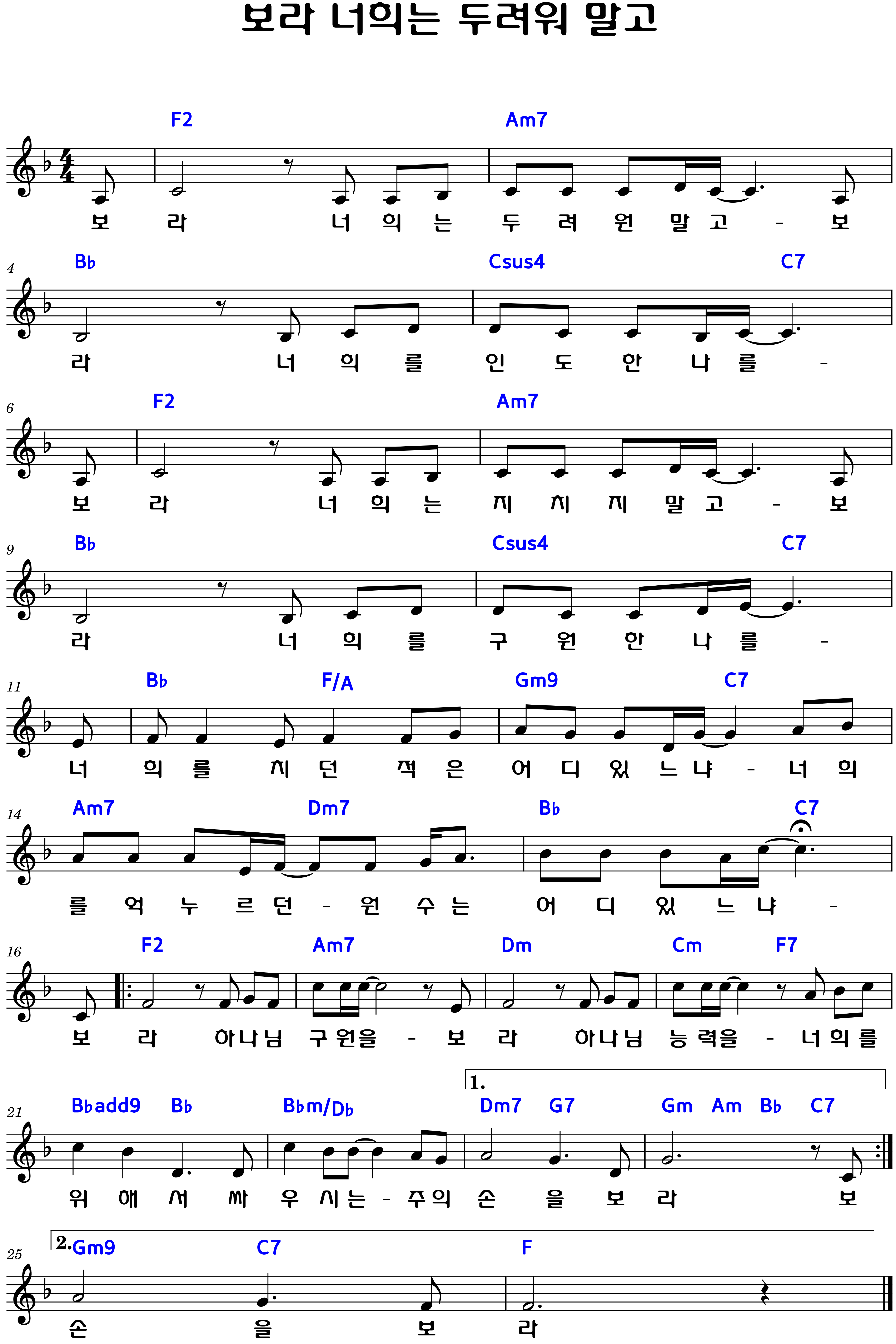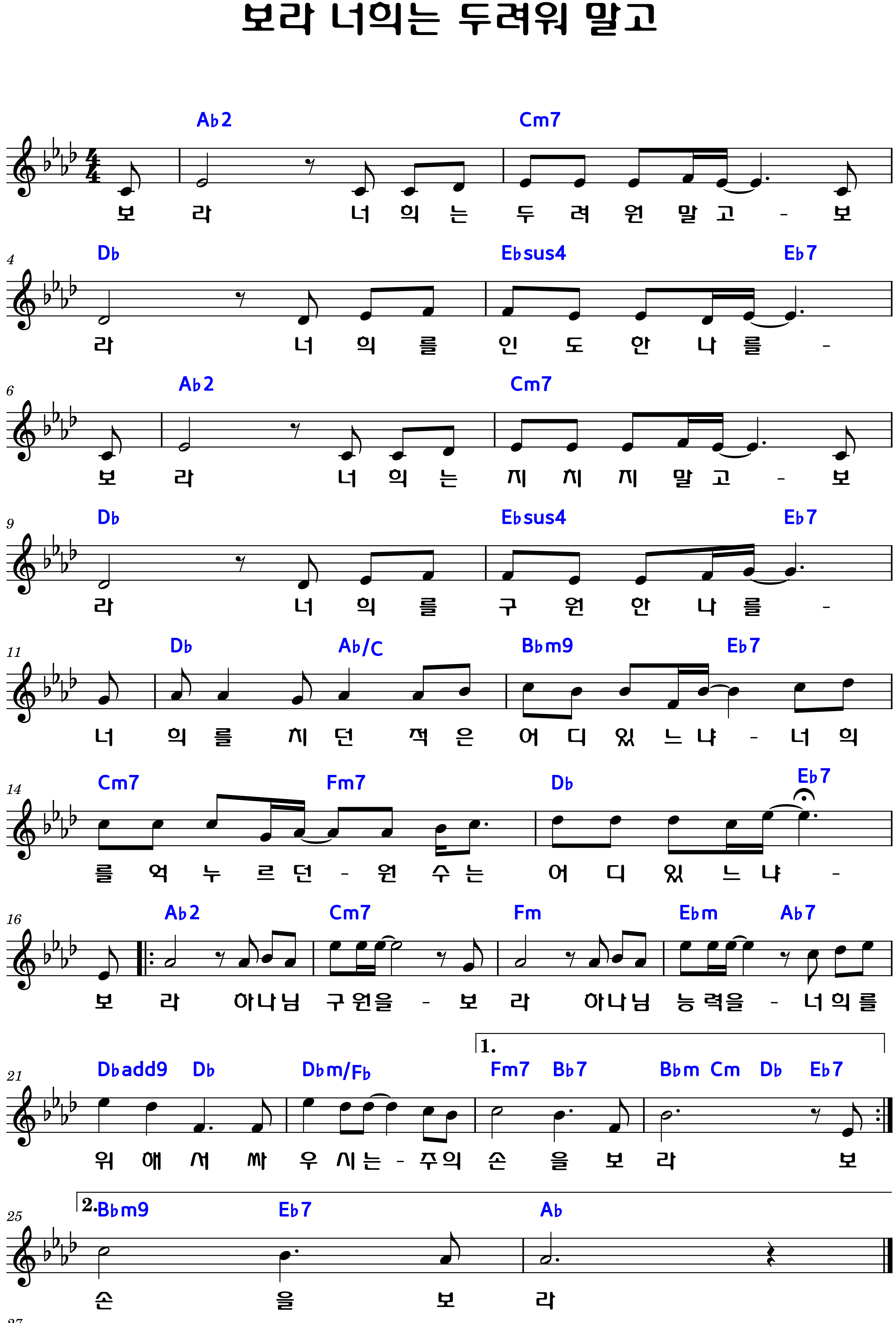 "보라 너희는 두려워 말고" 악보F.G.Ab.A.코드