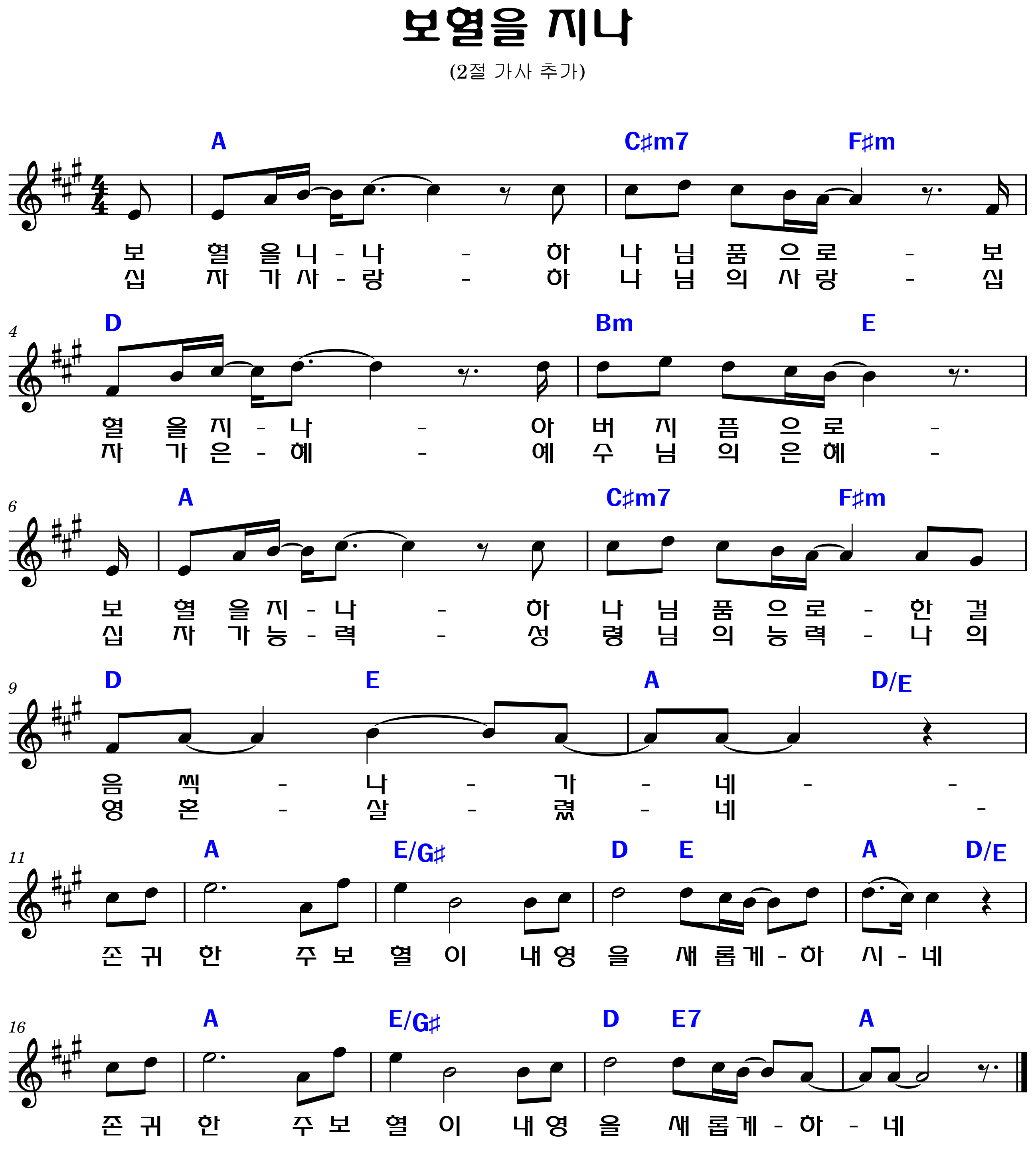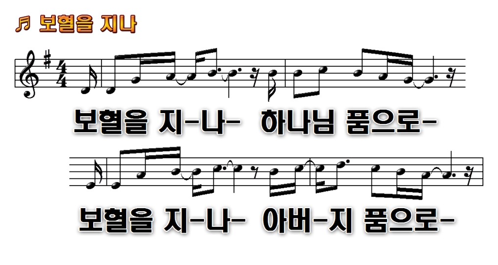 "보혈을 지나 하나님 품으로 한걸음씩 나가네"