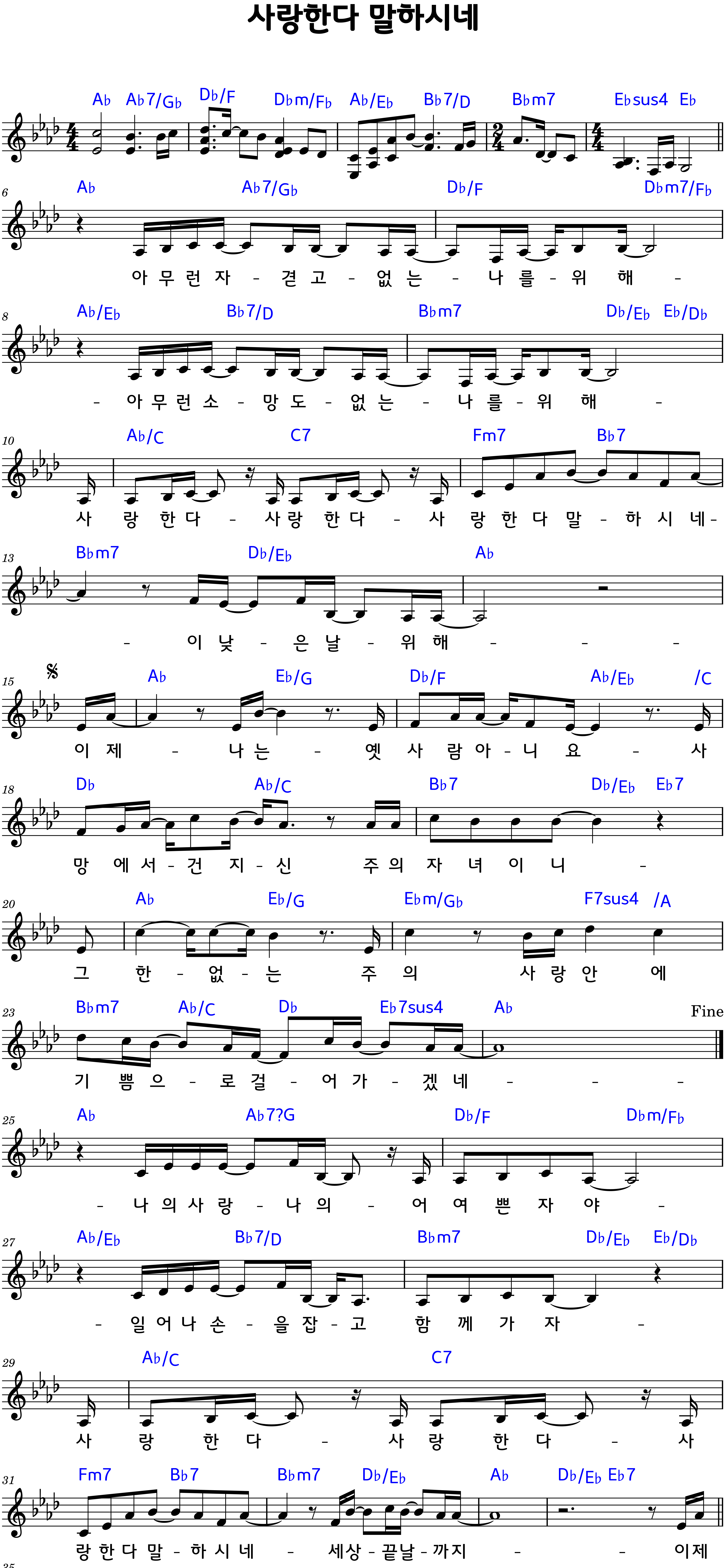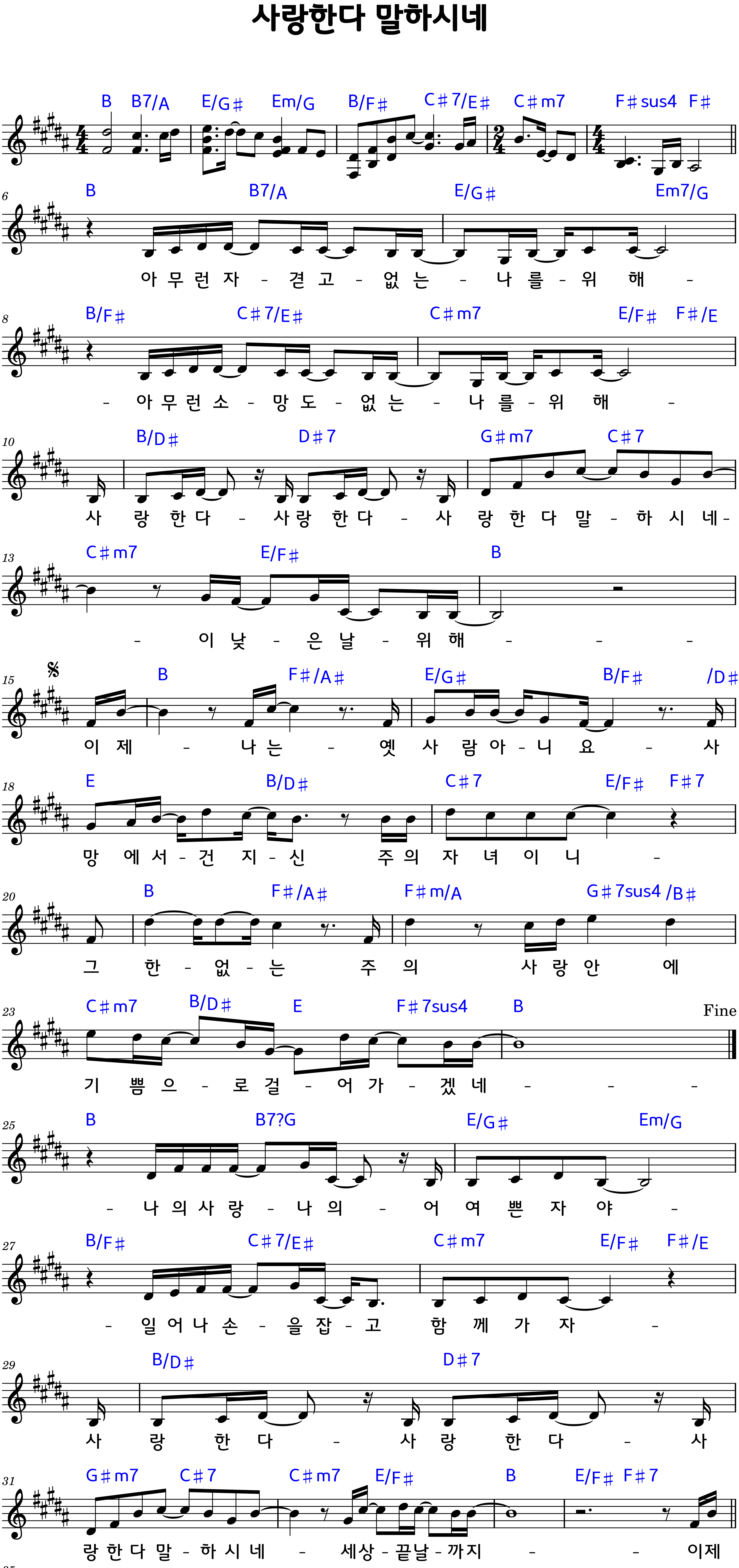 “사랑한다 사랑한다 / 사랑한다 말하시네”