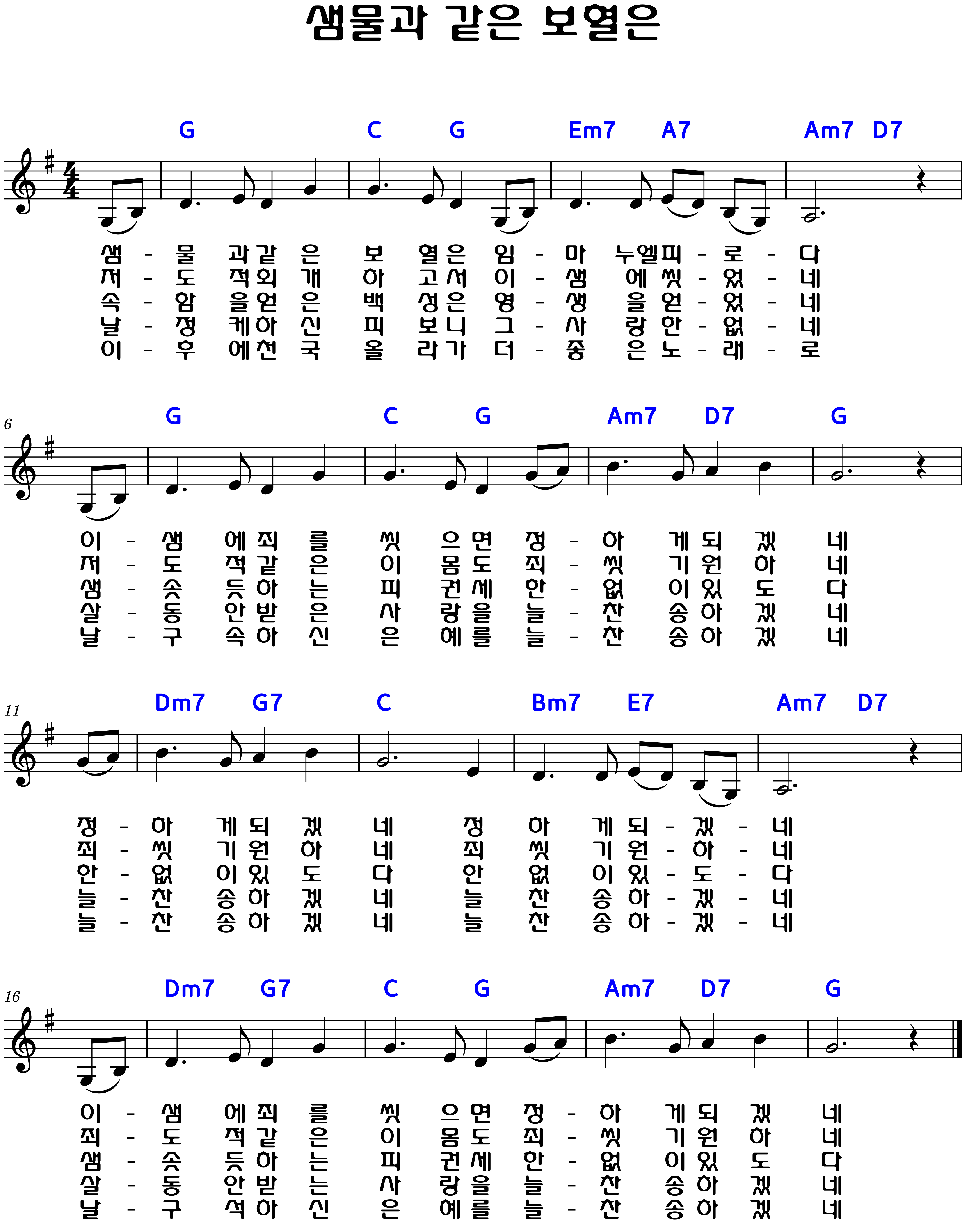 가사변찮는 주님의 사랑과거룩한 보혈의 공로를우리 다 찬양을 합시다주님을 만나볼 때까지 우리를 깨끗게 한 피는무궁한 생명의 물일세생명을 구원한 친구들하나님 찬양을 합시다 주님의 깨