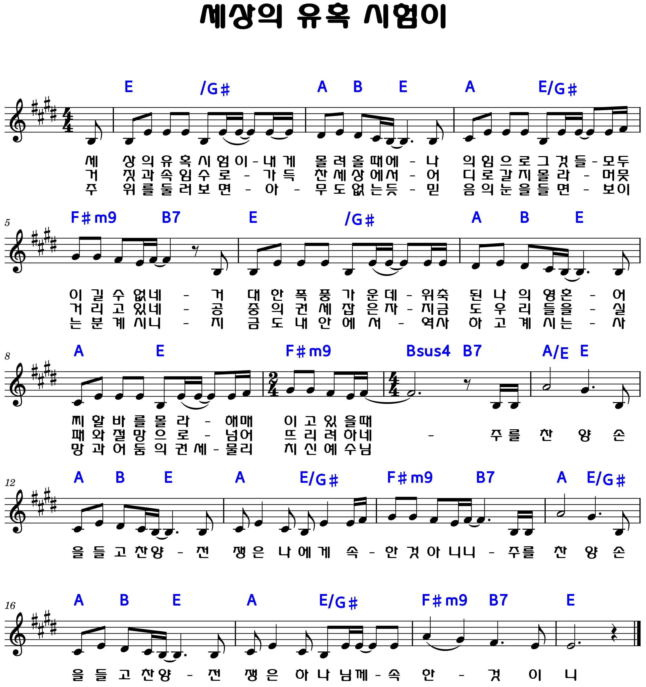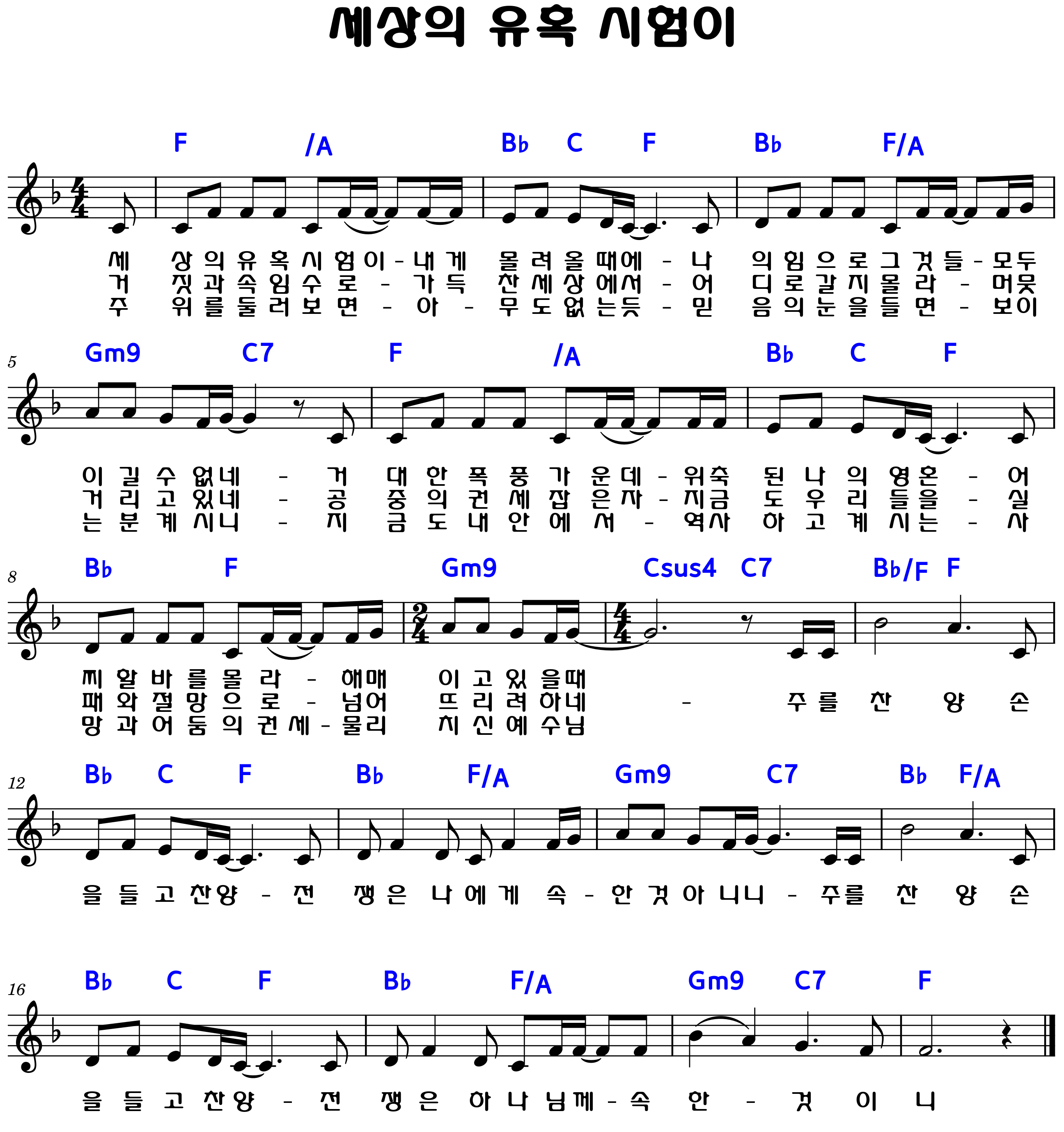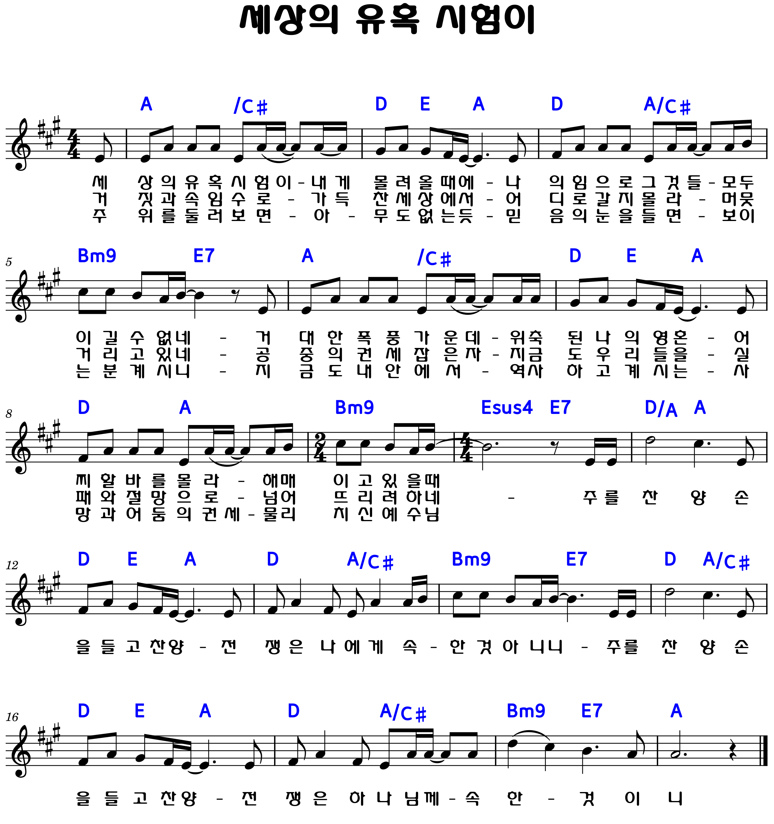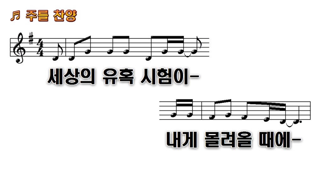 "세상의 유혹 시험이 내게 몰려올 때에, 나의 힘으론 그것들 모두 이길 수 없네"