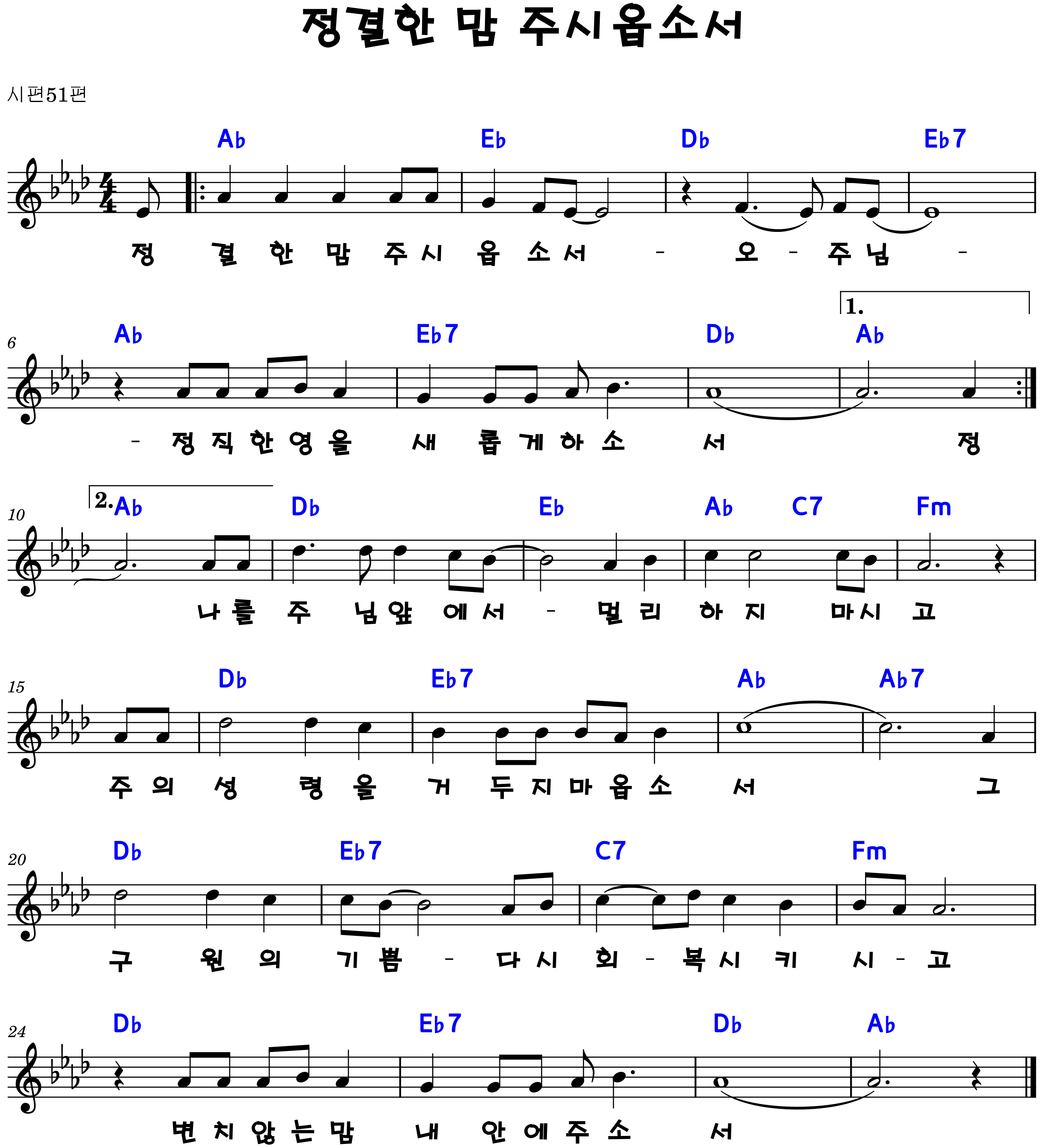 ➡ "하나님이여 내 속에 정한 마음을 창조하시고 내 안에 정직한 영을 새롭게 하소서."