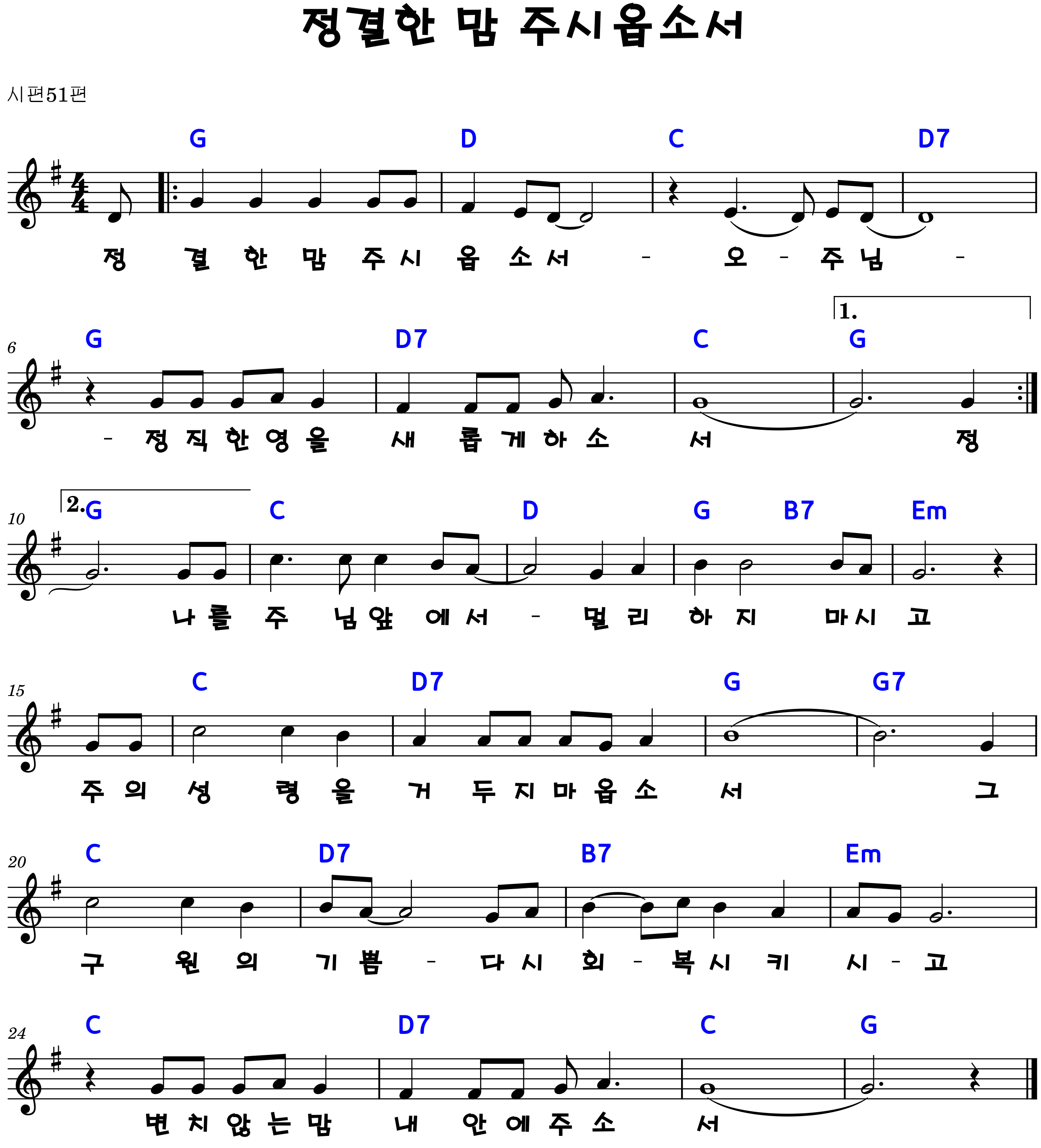 다윗이 간절히 회개하며 깨끗한 마음을 간구하는 기도입니다.