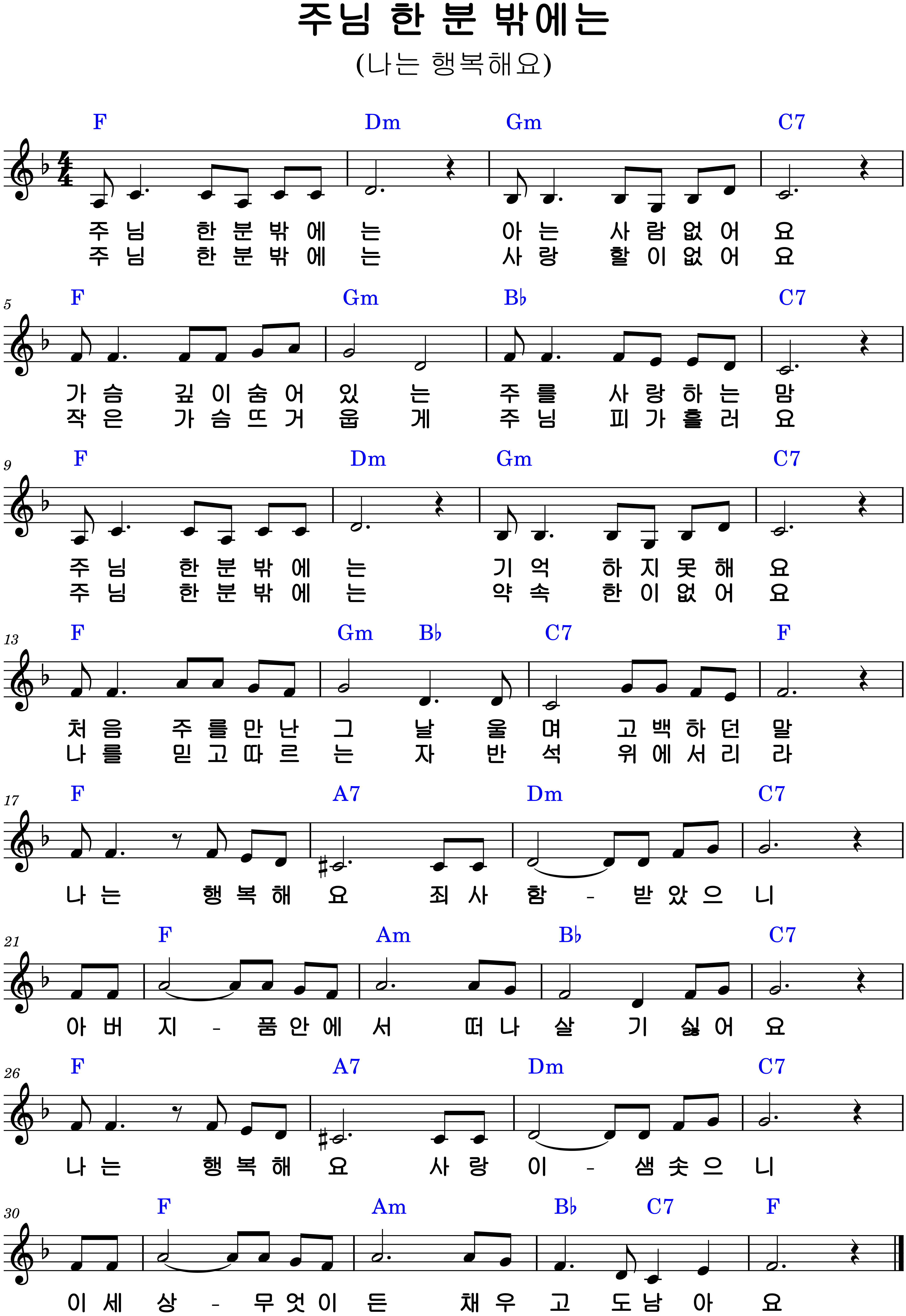 "주님 한 분 밖에는" 악보F.G.Ab.A.Bb.B.C.코드