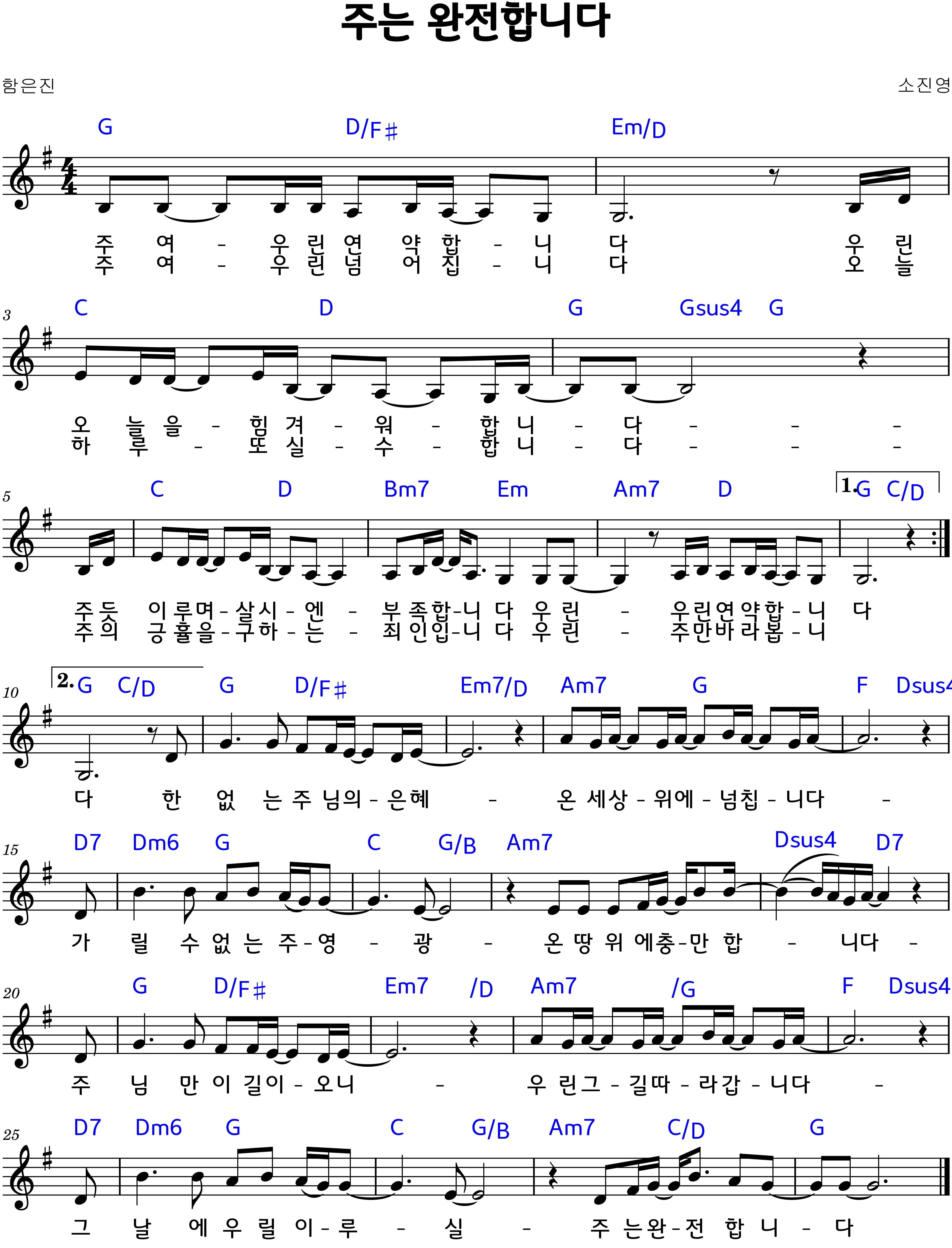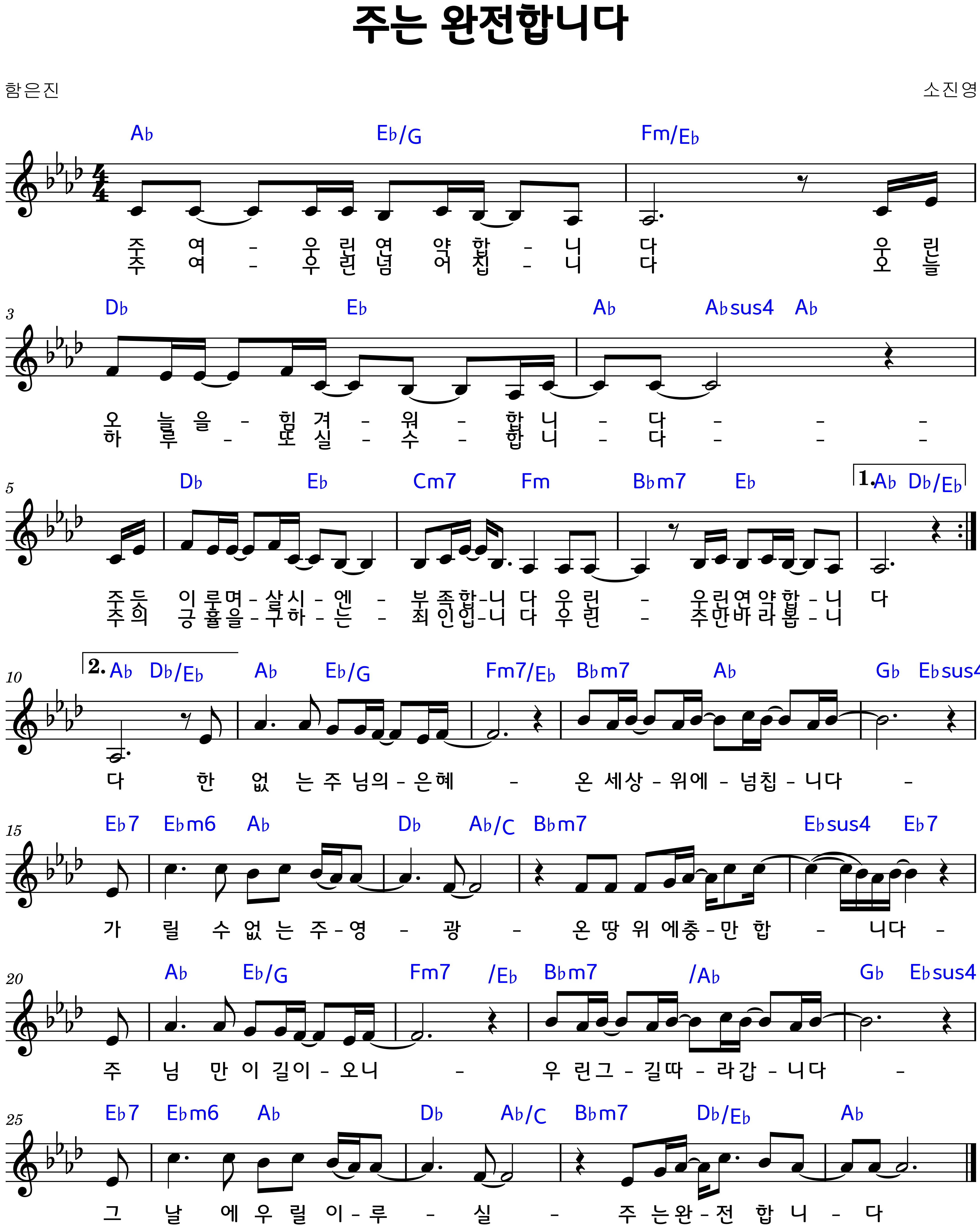 "주여 우린 연약합니다" 악보G.Ab.A.Bb.B.C.코드
