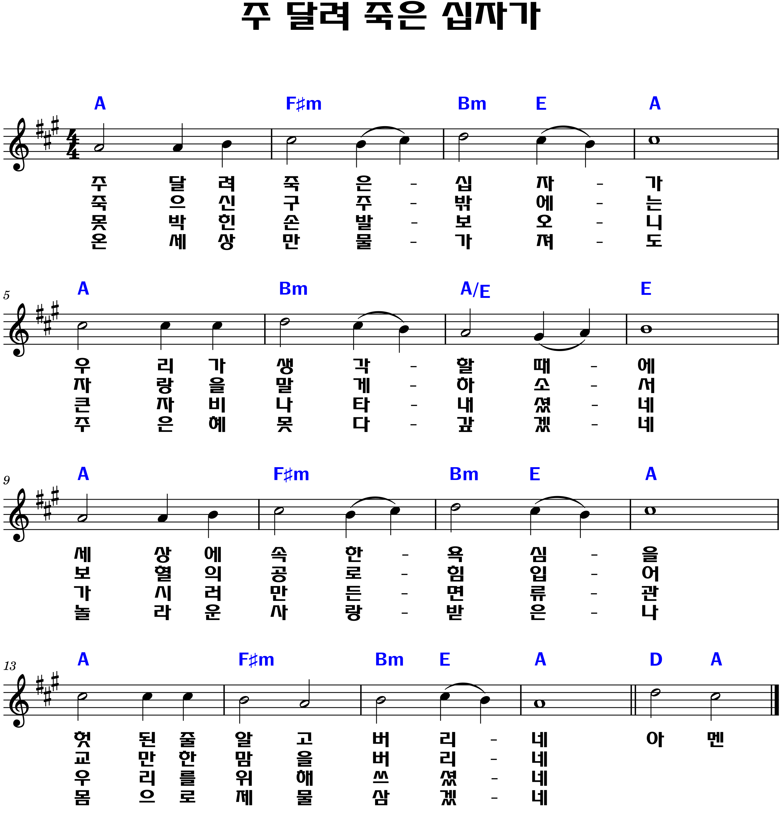 "죽으신 구주 밖에는 / 자랑을 말게 하소서 / 보혈의 공로 힘 입어 / 교만한 맘을 버리네"