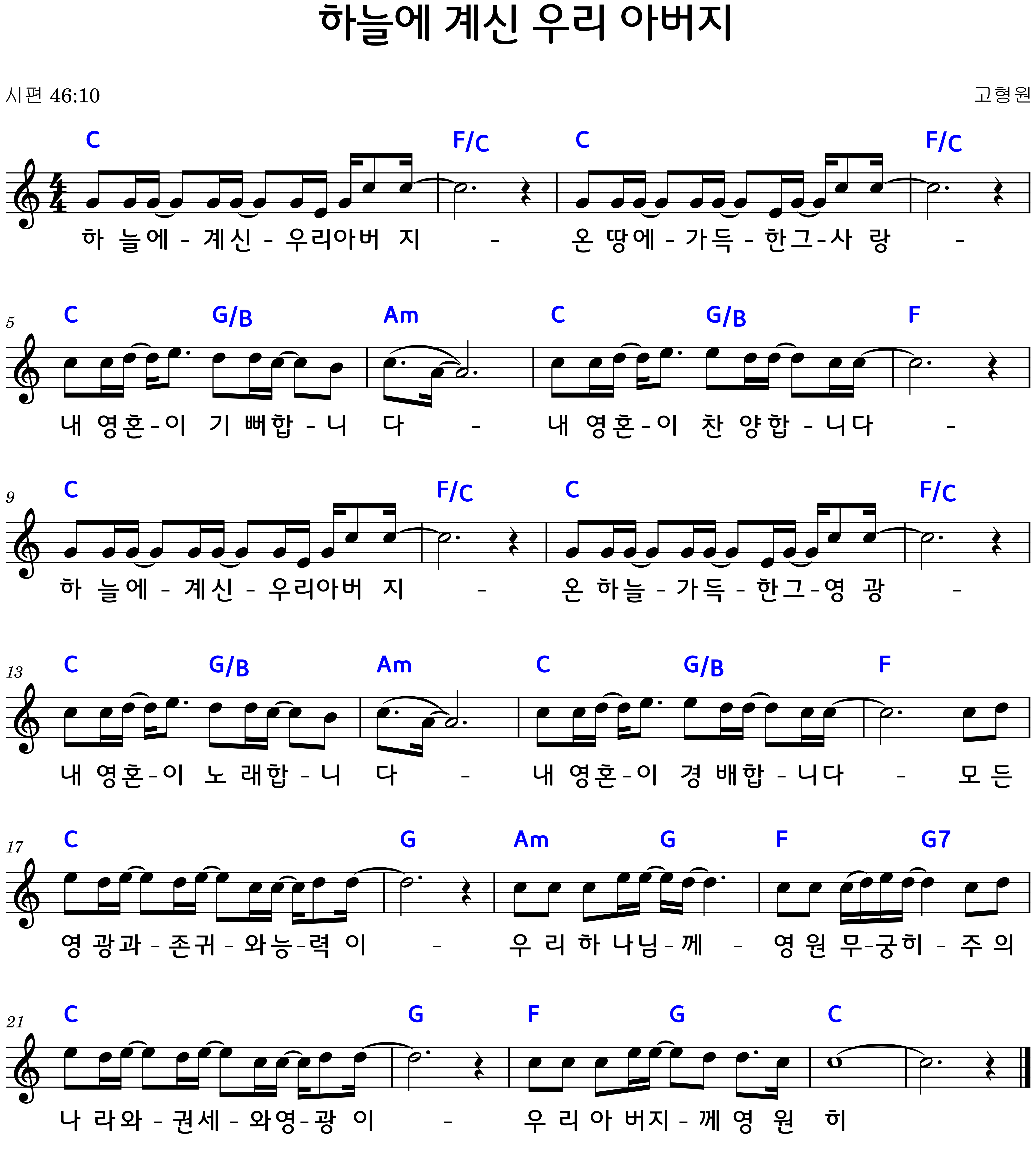 "하늘에 계신 우리 아버지" 악보G.Ab.A.Bb.B.C.코드