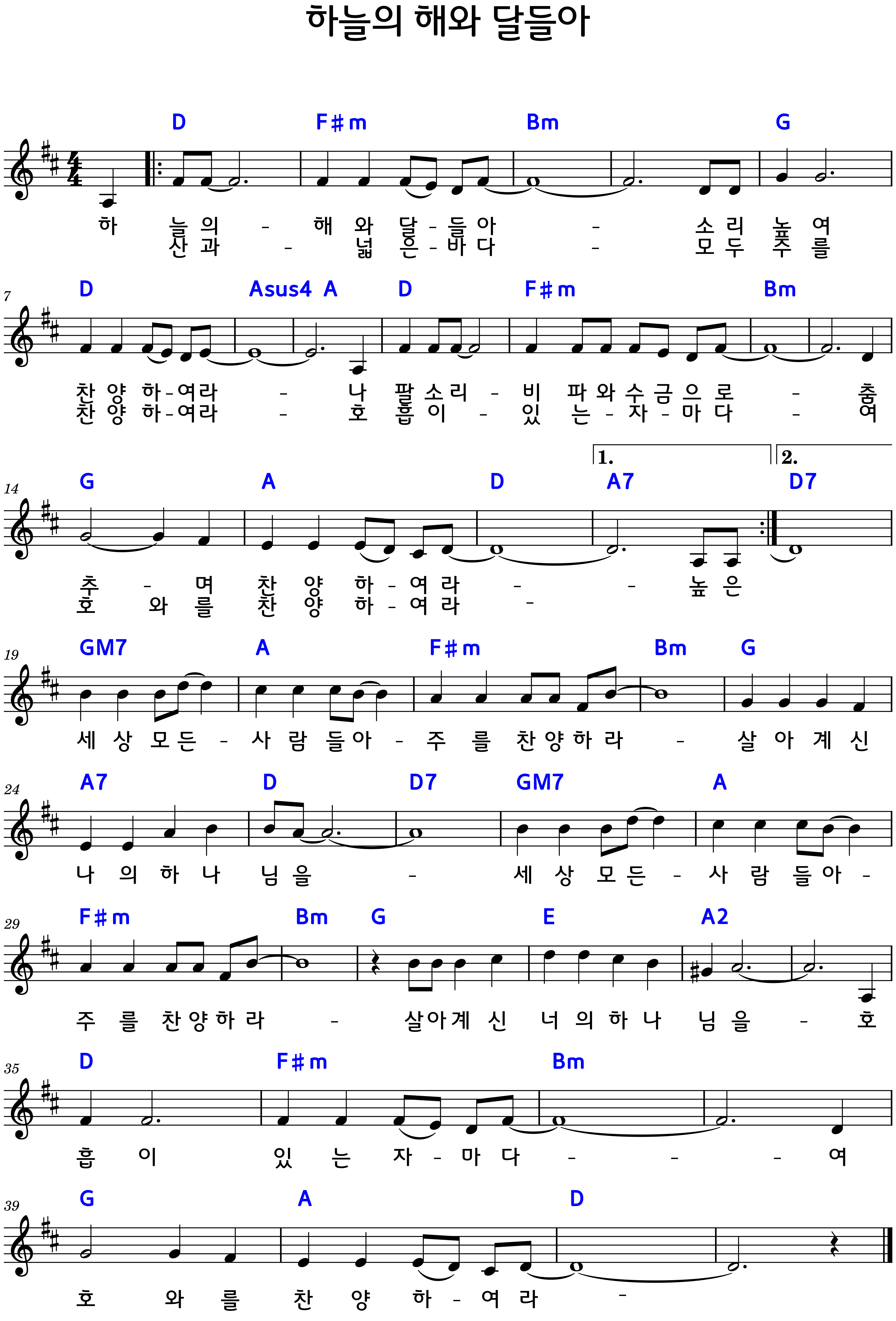 하늘의 해와 달들아 소리높여 찬양하여라