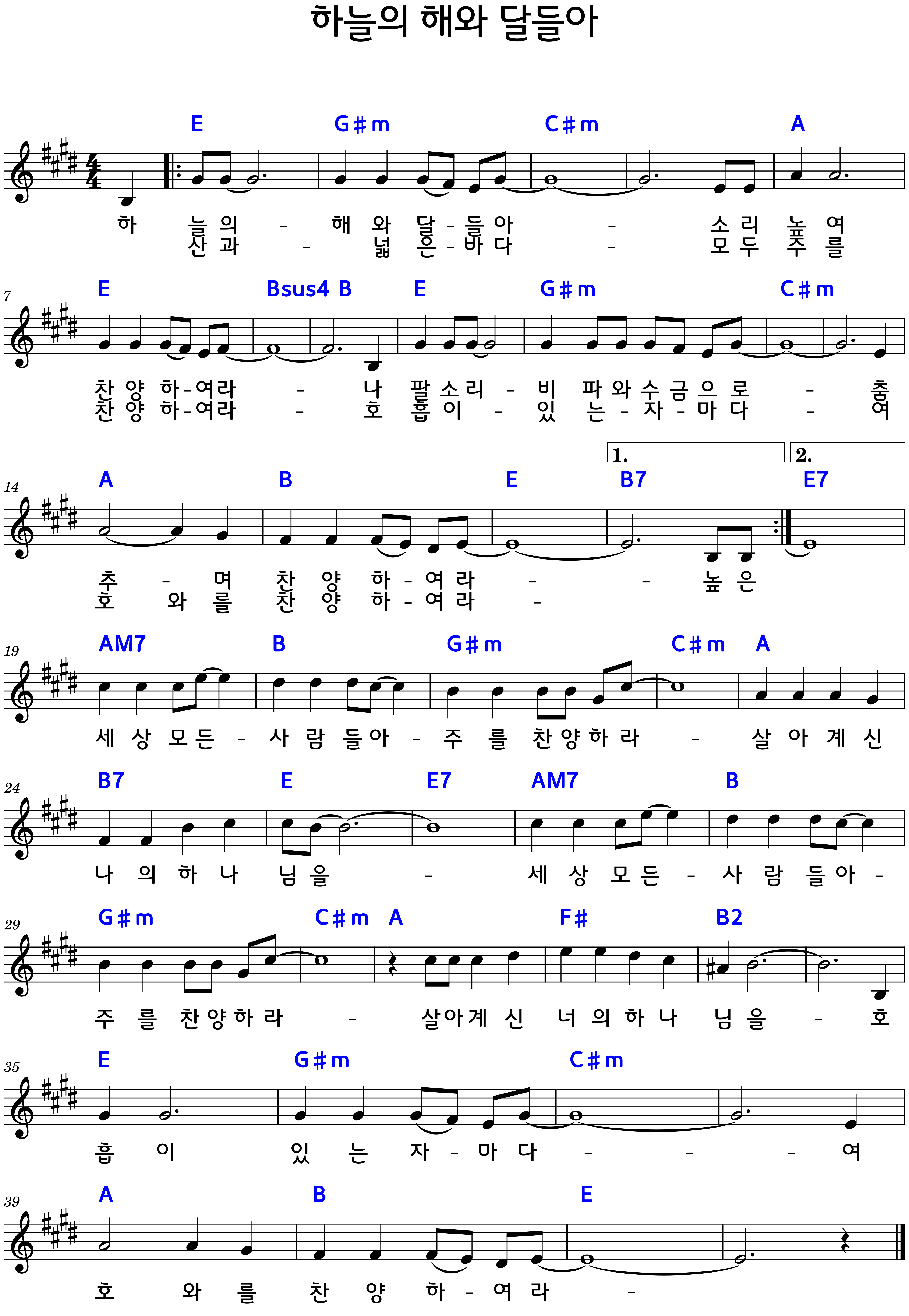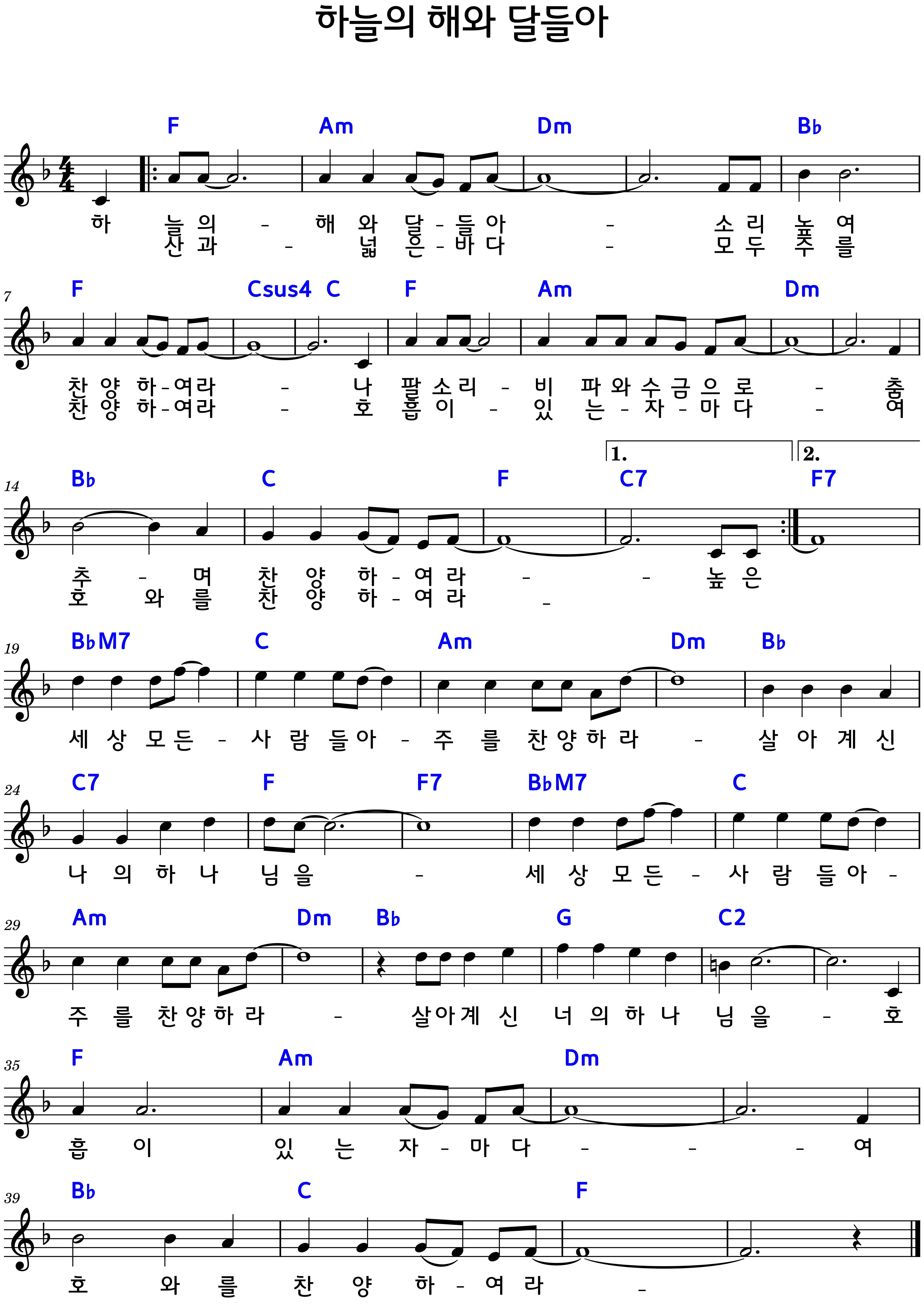 1. "하늘의 해와 달들아 소리높여 찬양하여라"