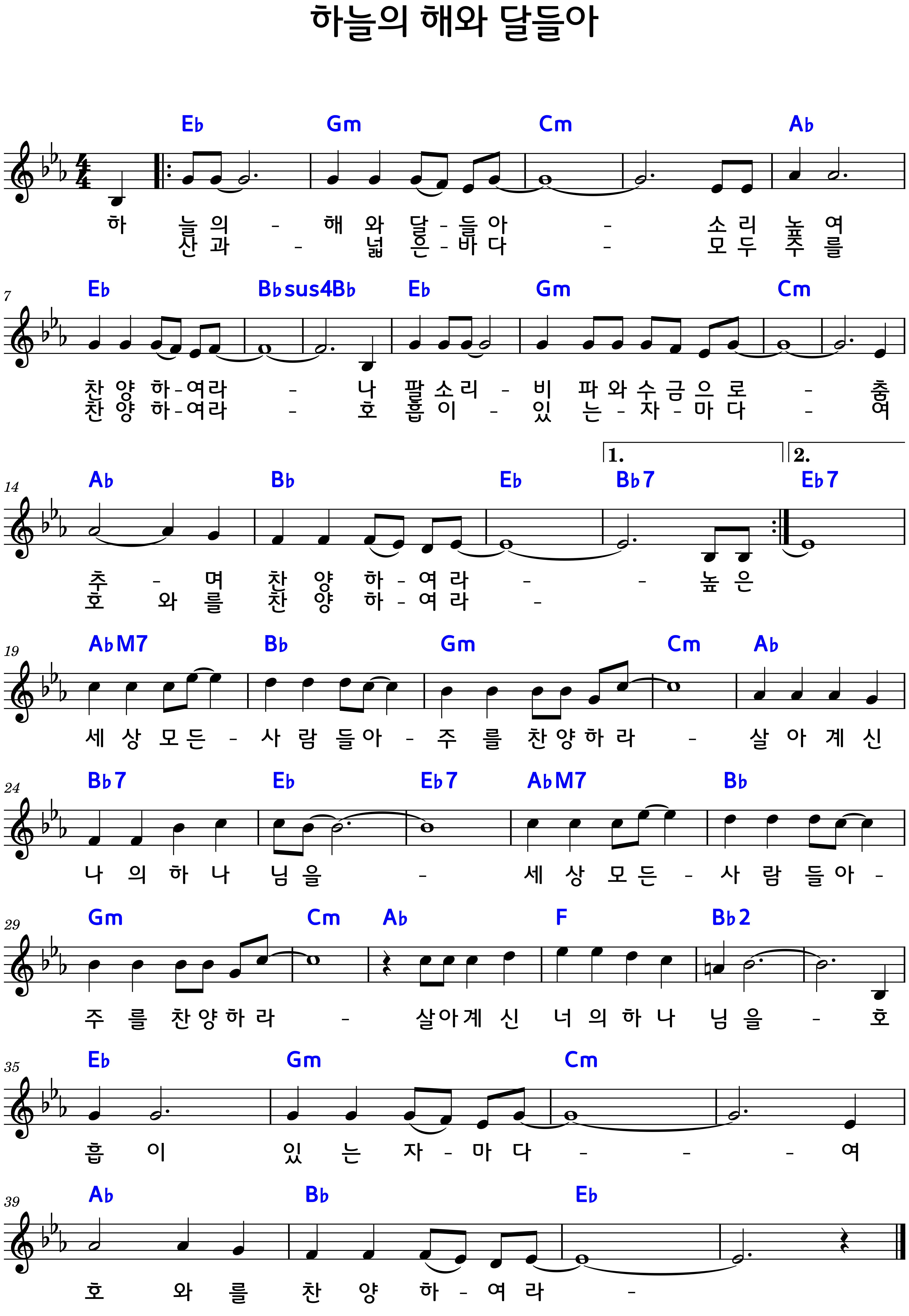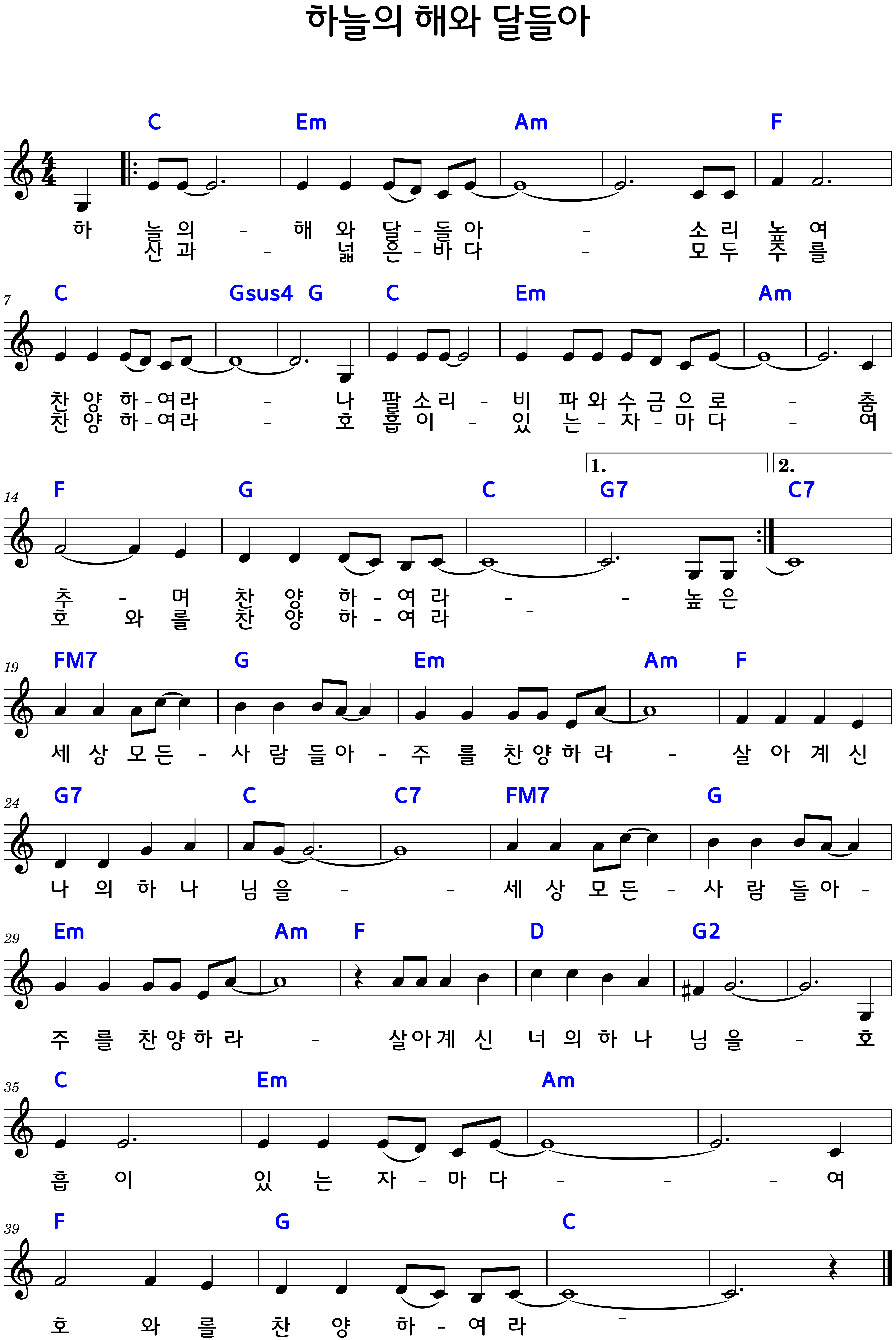 "하늘의 해와 달들아" 악보C.D.Eb.E.F코드